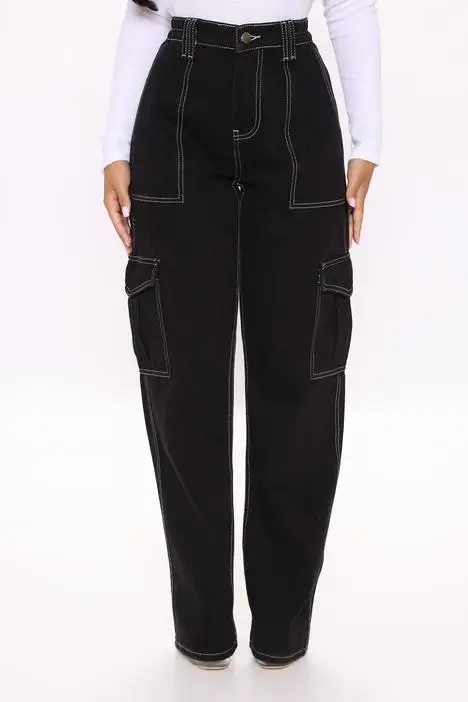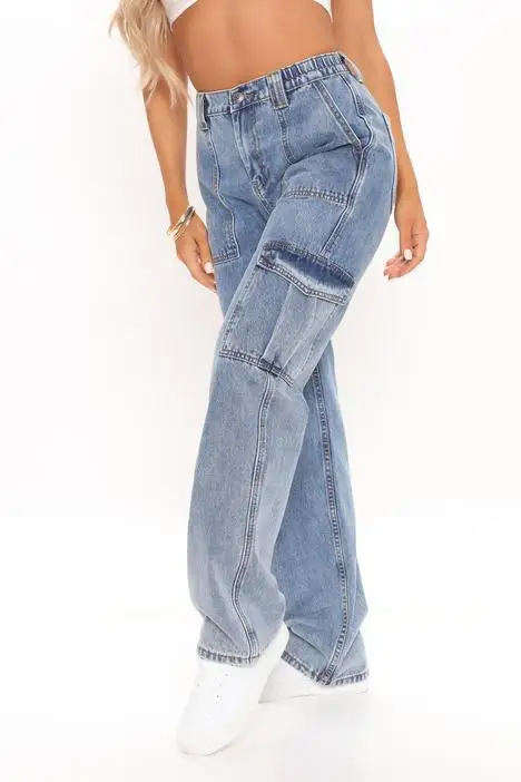 2023 New Y2K Women's High Waist Multi Pocket Cargo Jeans Fashion Loose Denim Wide Leg Pants Casual Female Trousers S-XL