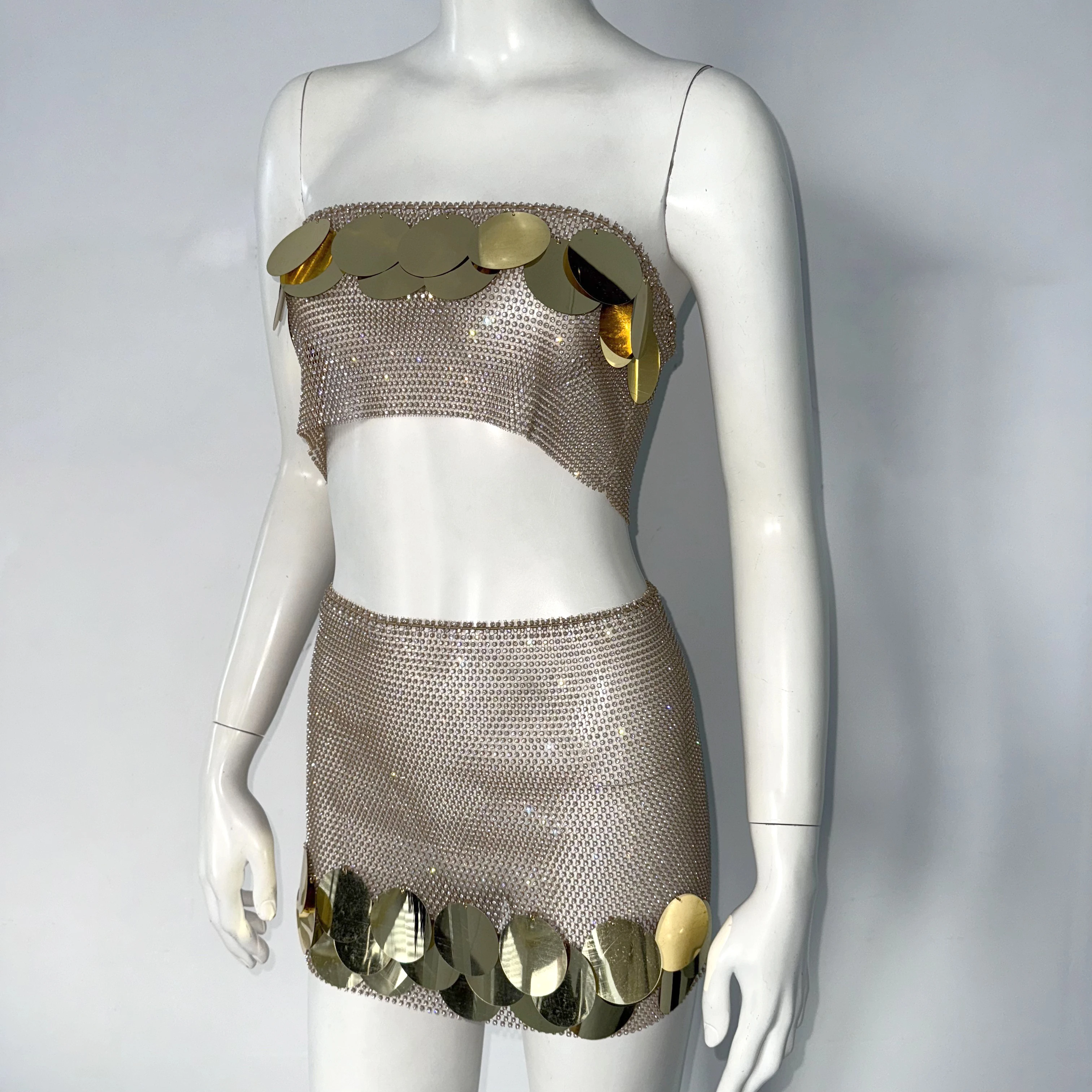 AKYZO Sexy Strapless Mini Skirt Set American Sweetheart Camisole Half Skirt two-piece set spicy girl fishing net skirt