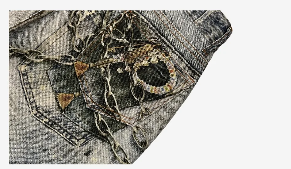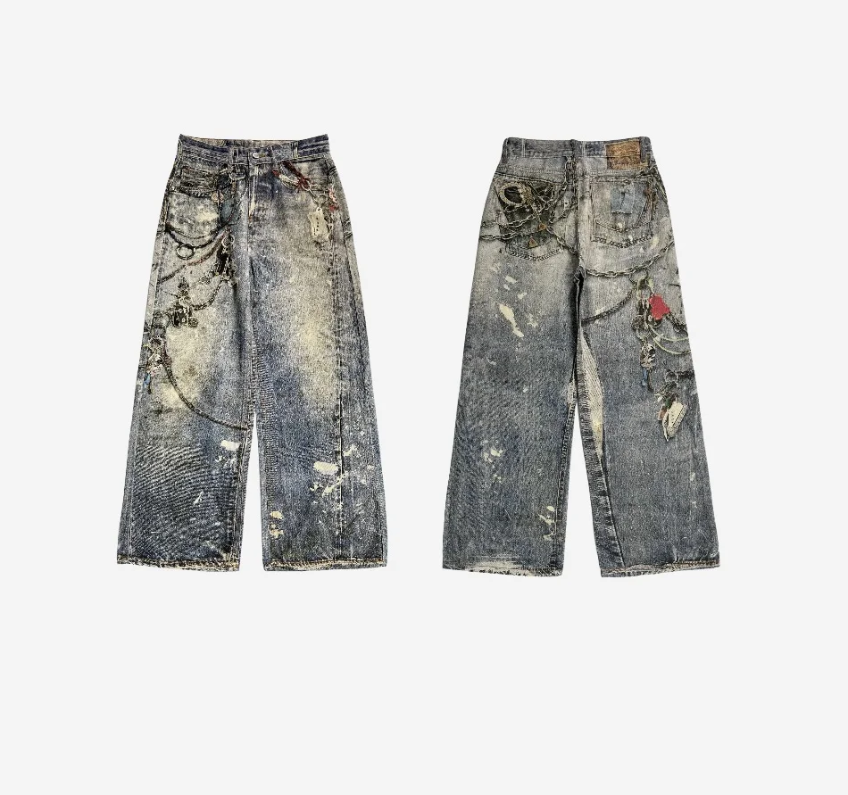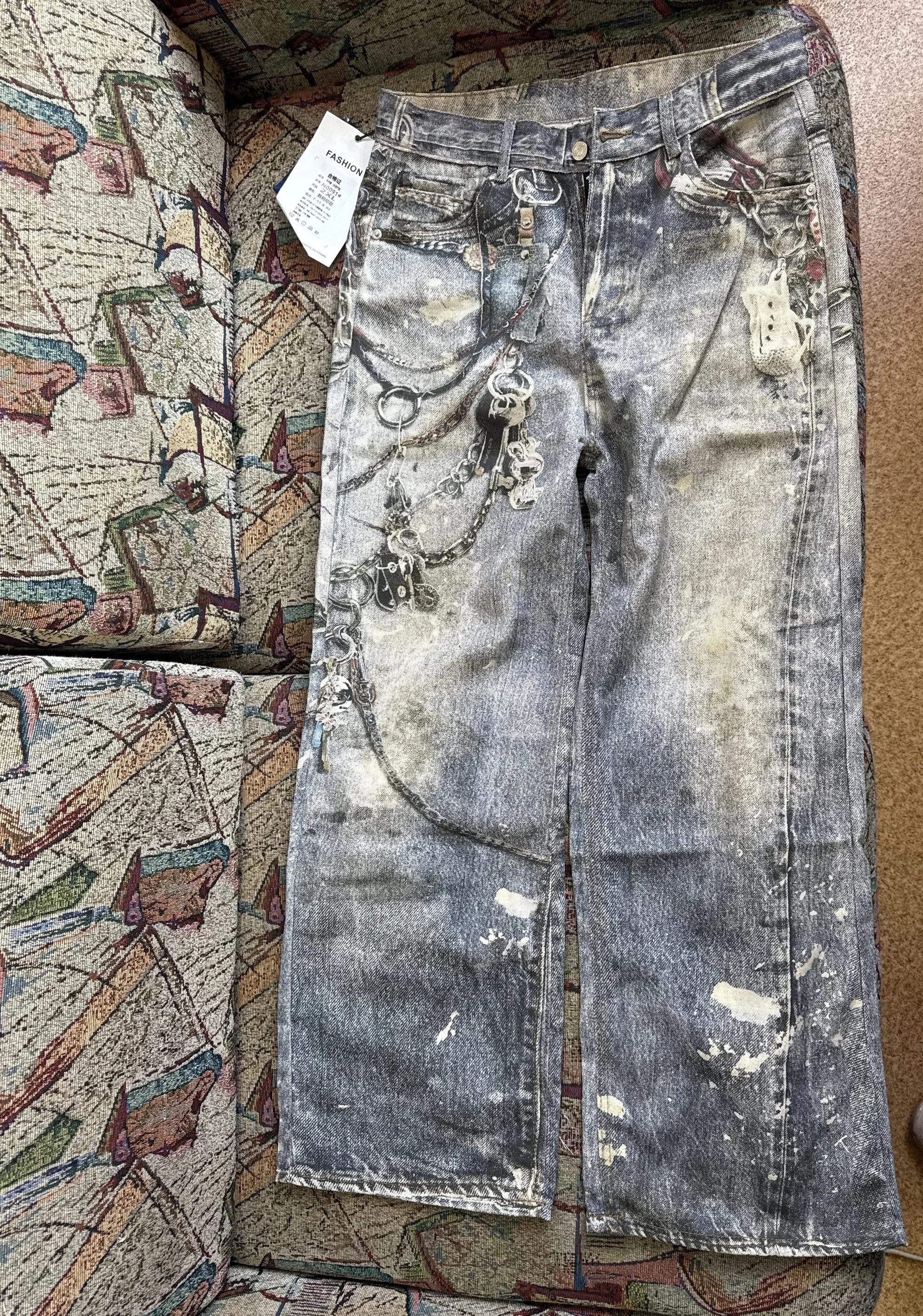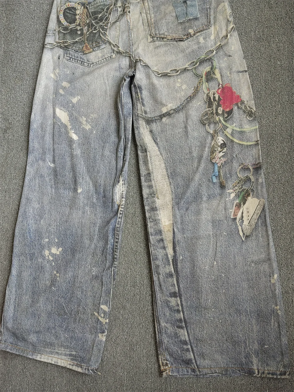CHIC Streetwear Baggy Jeans for Men American Vintage 3D Painting Printed Washed Denim Pants Women Straight Wide Leg Trousers