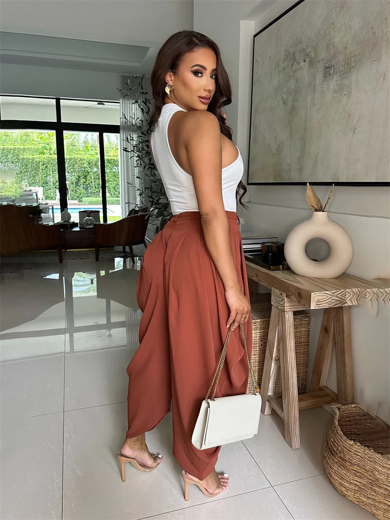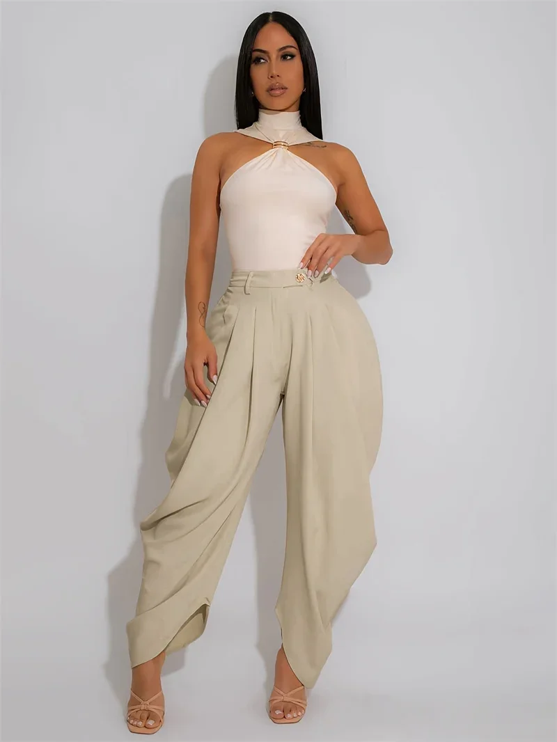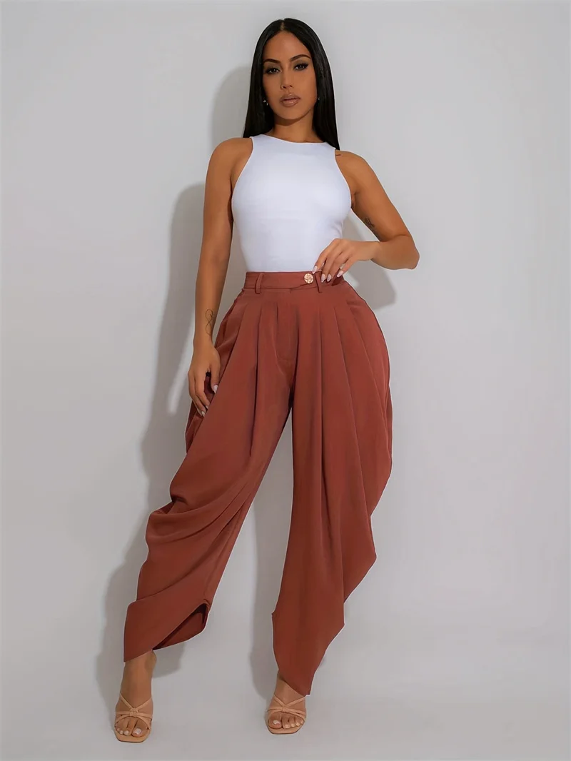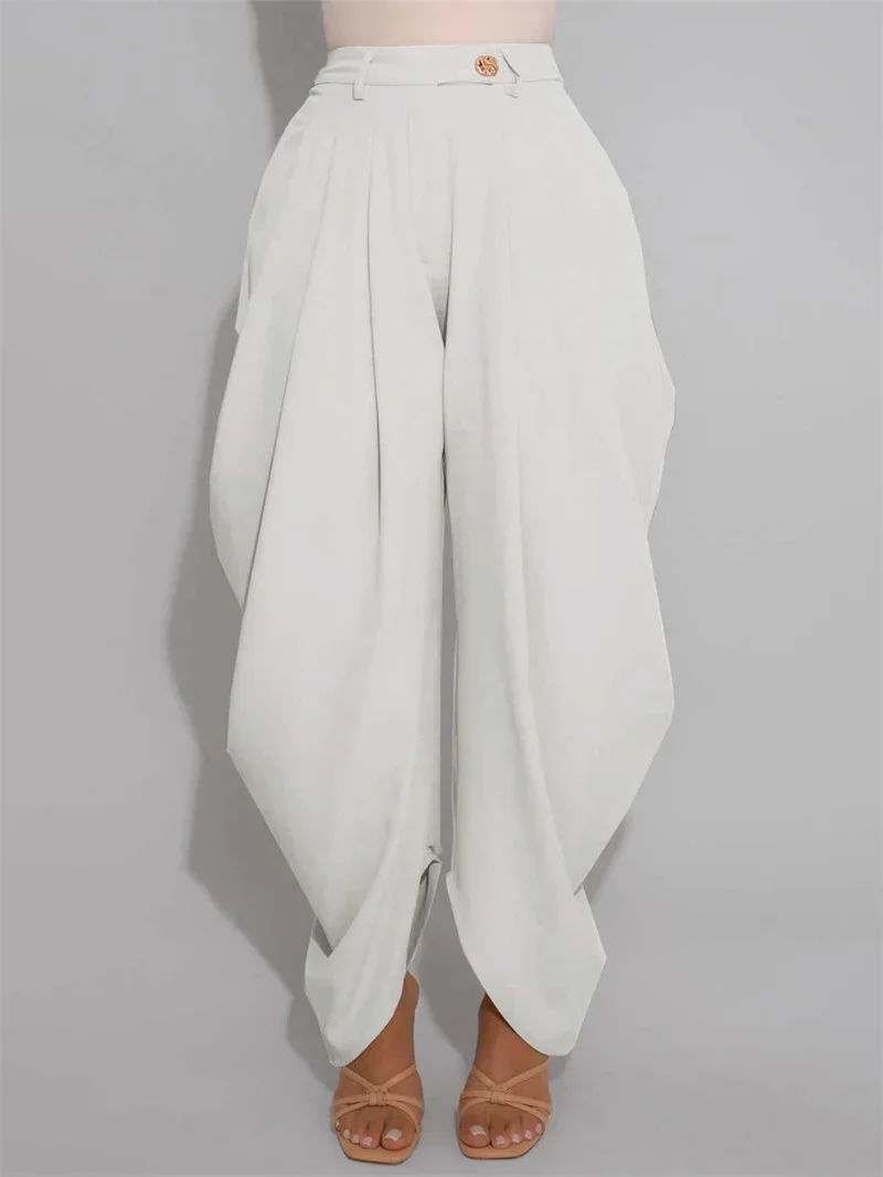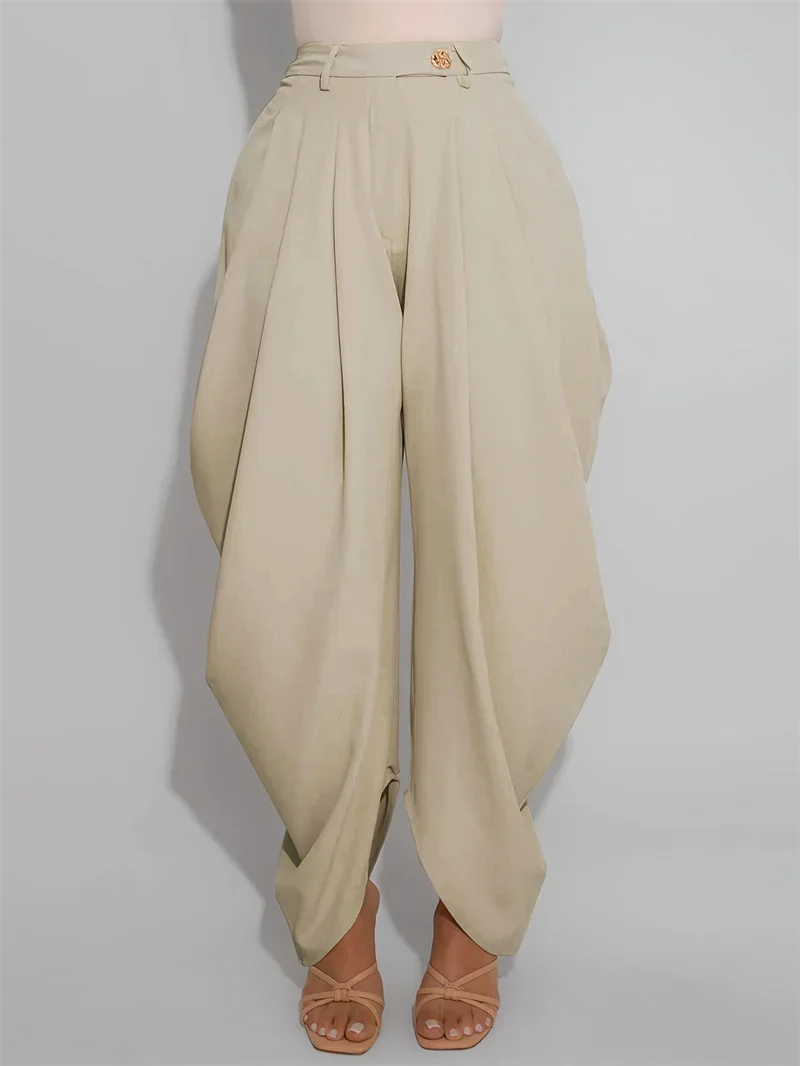Doyerl Solid Elegant Pants for Woman Clothing Vintage High Waist Button Fly Pleated Ankle-length Ladies Trousers Pantalon Femme
