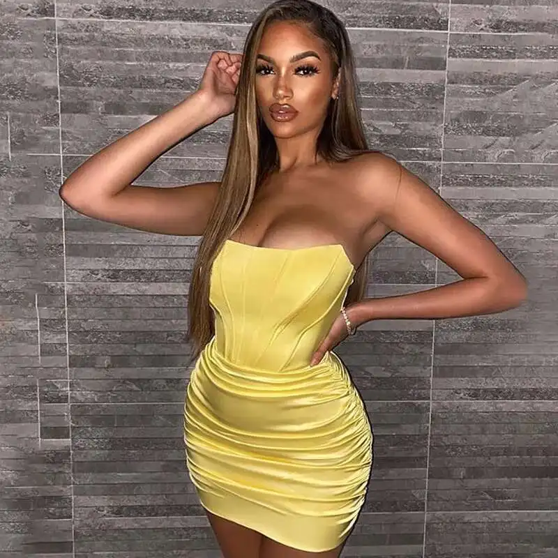 Giyu Satin Dress Women 2023 Autumn Sexy Night Club Party Bodycon Mini Dresses Ruched Slash Neck Off Shoulder Backless Vestidos
