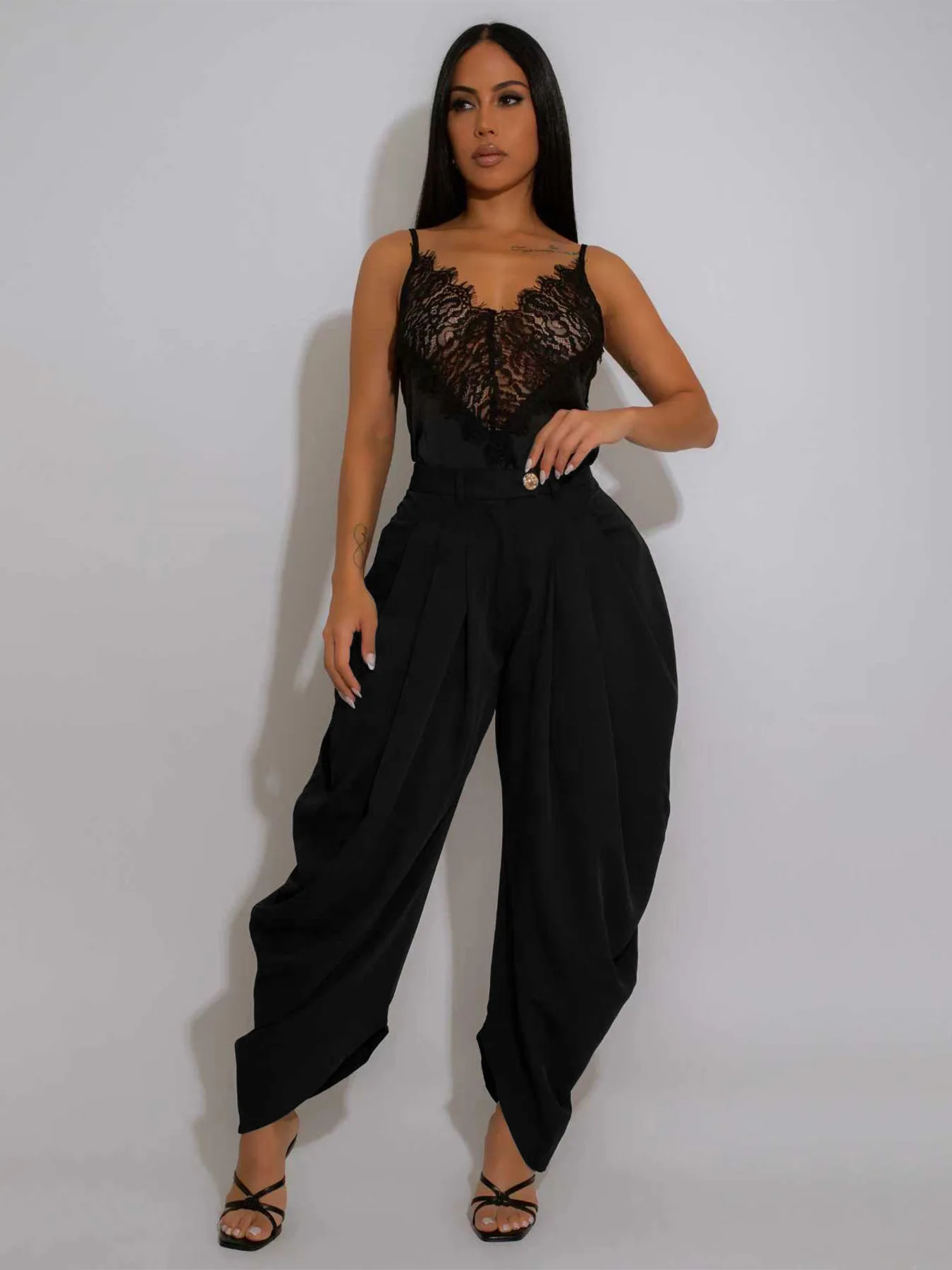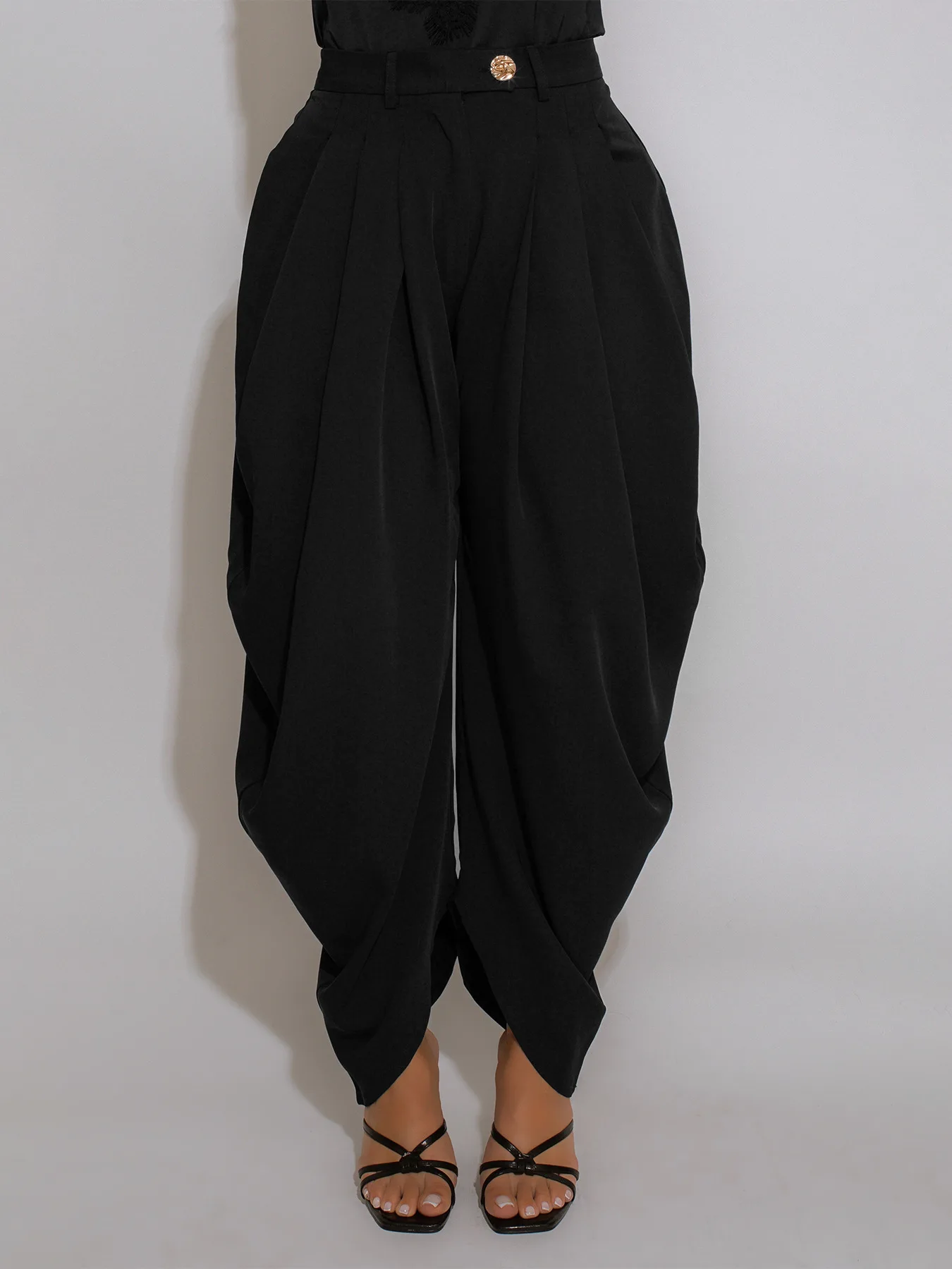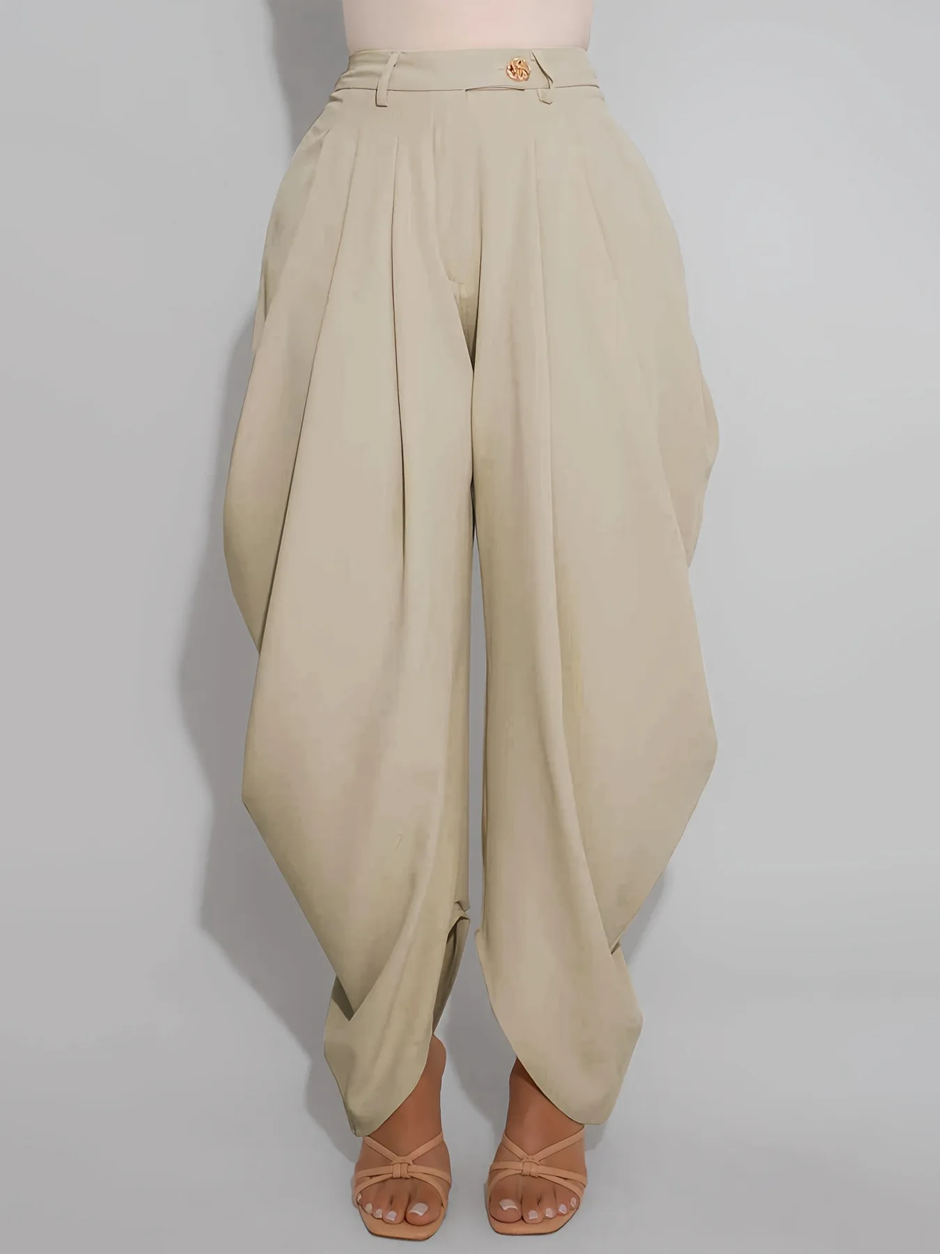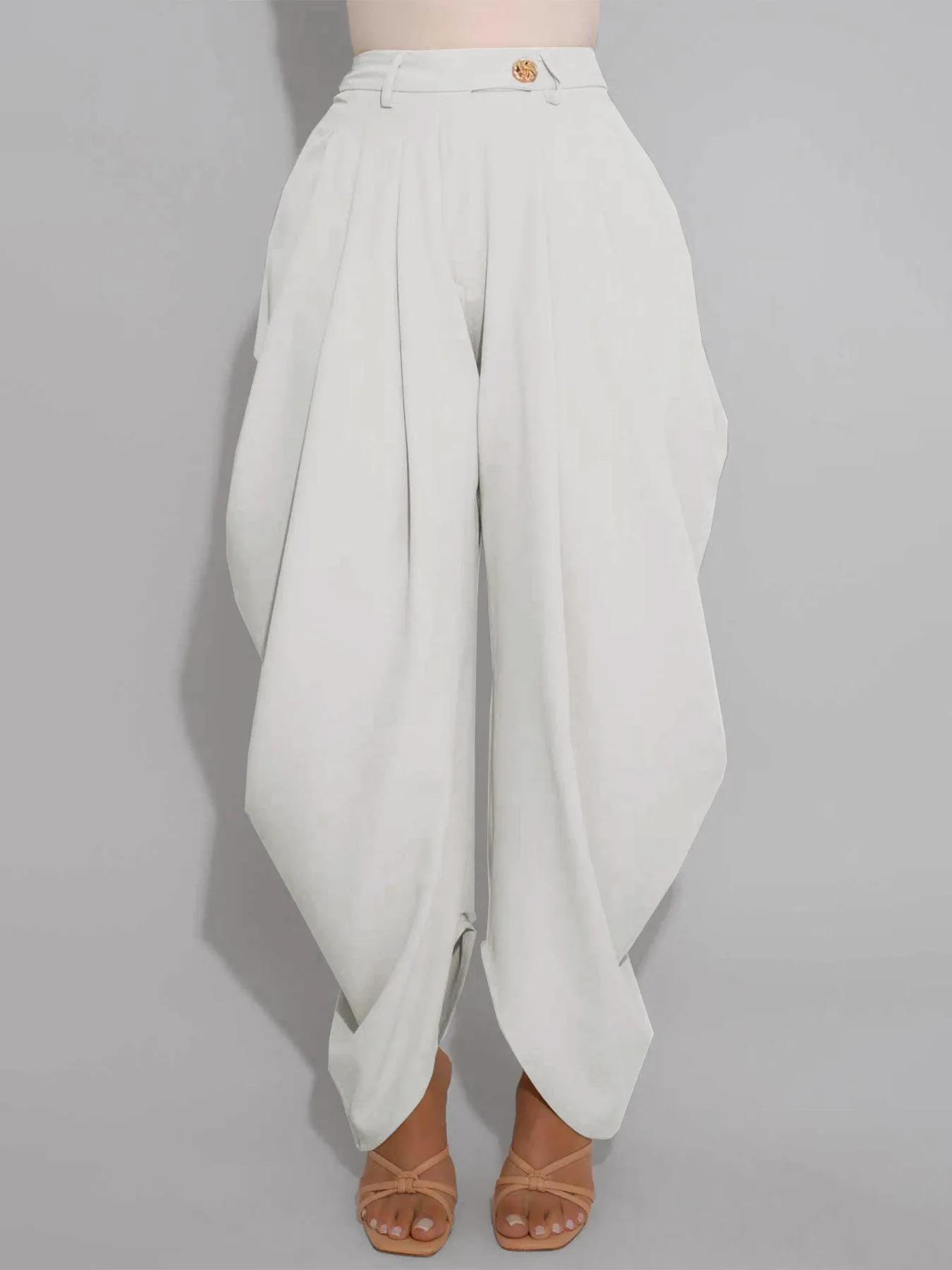 HLJ Fashion Loose Flower Bud Pants Women Solid Color Ruched Patchwork High Waist Long Pants Female Streetwear Trousers 2025 New