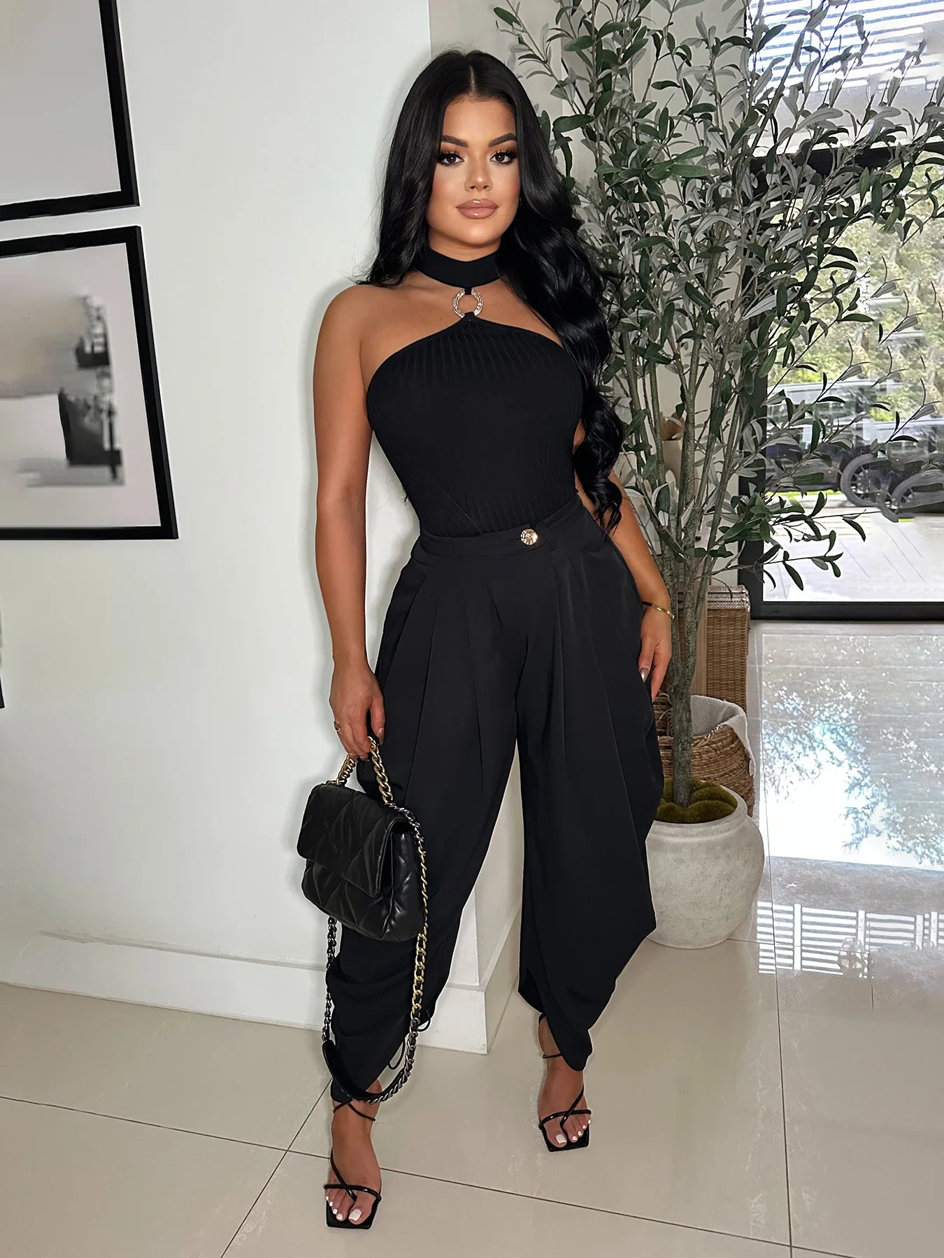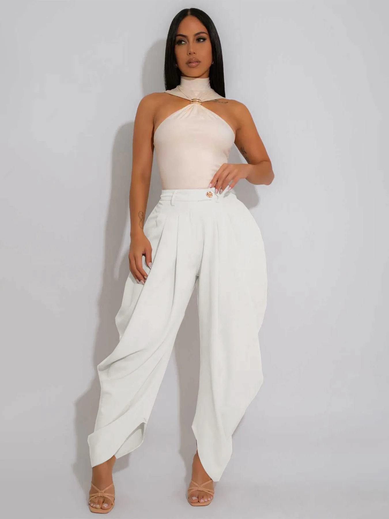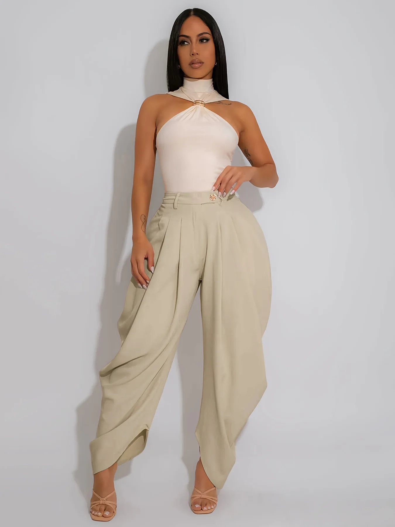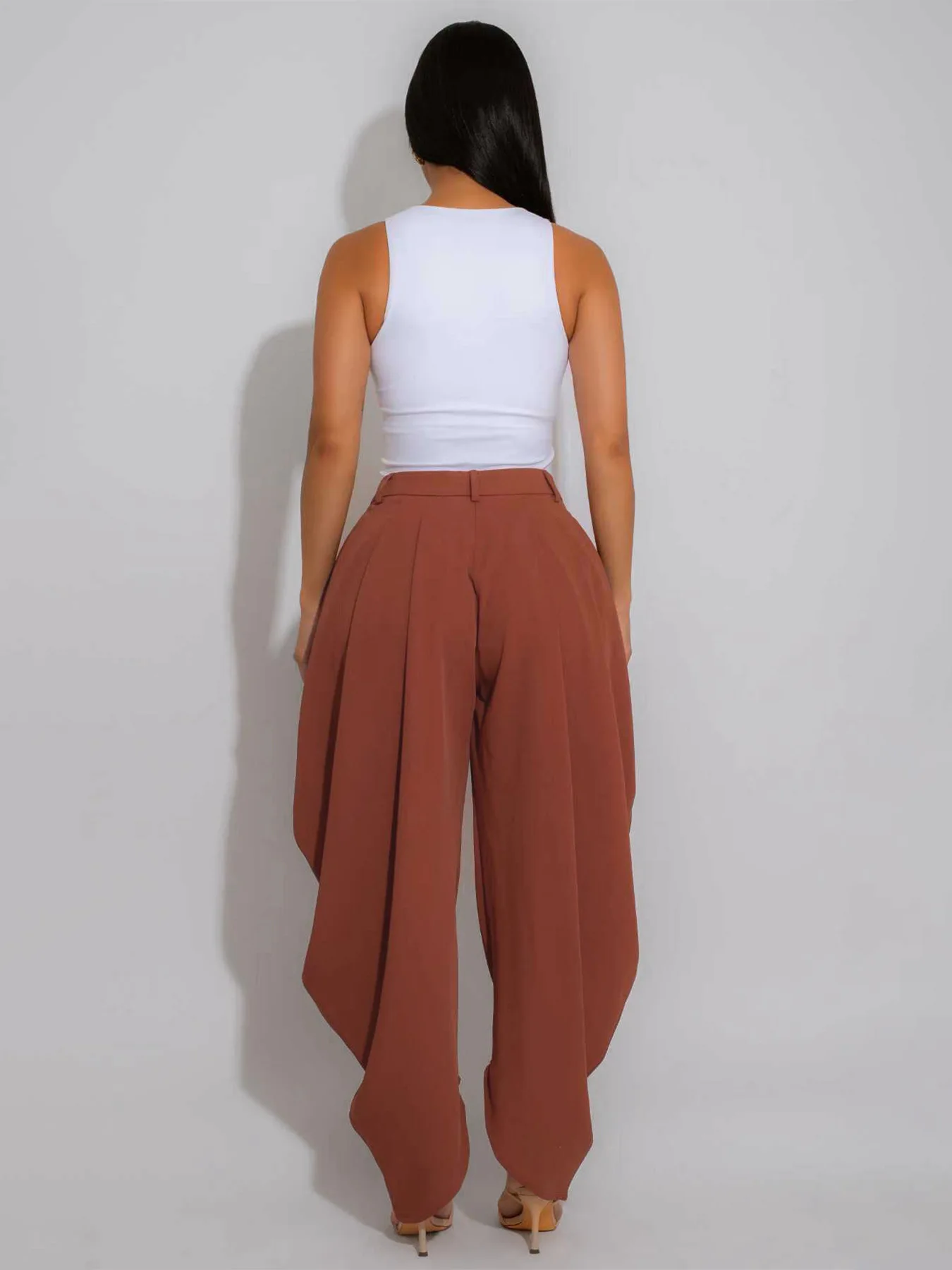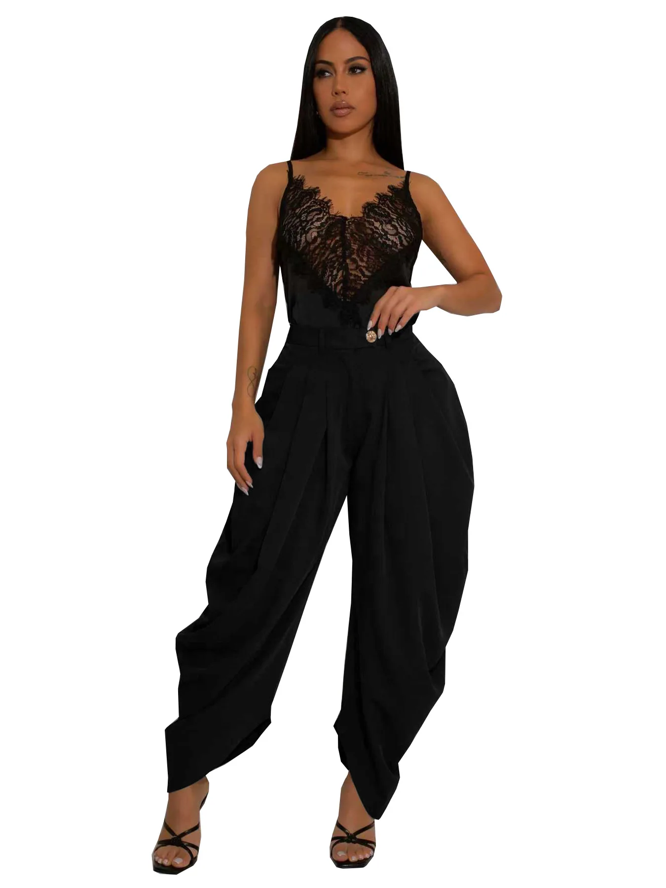HLJ Fashion Loose Flower Bud Pants Women Solid Color Ruched Patchwork High Waist Long Pants Female Streetwear Trousers 2025 New