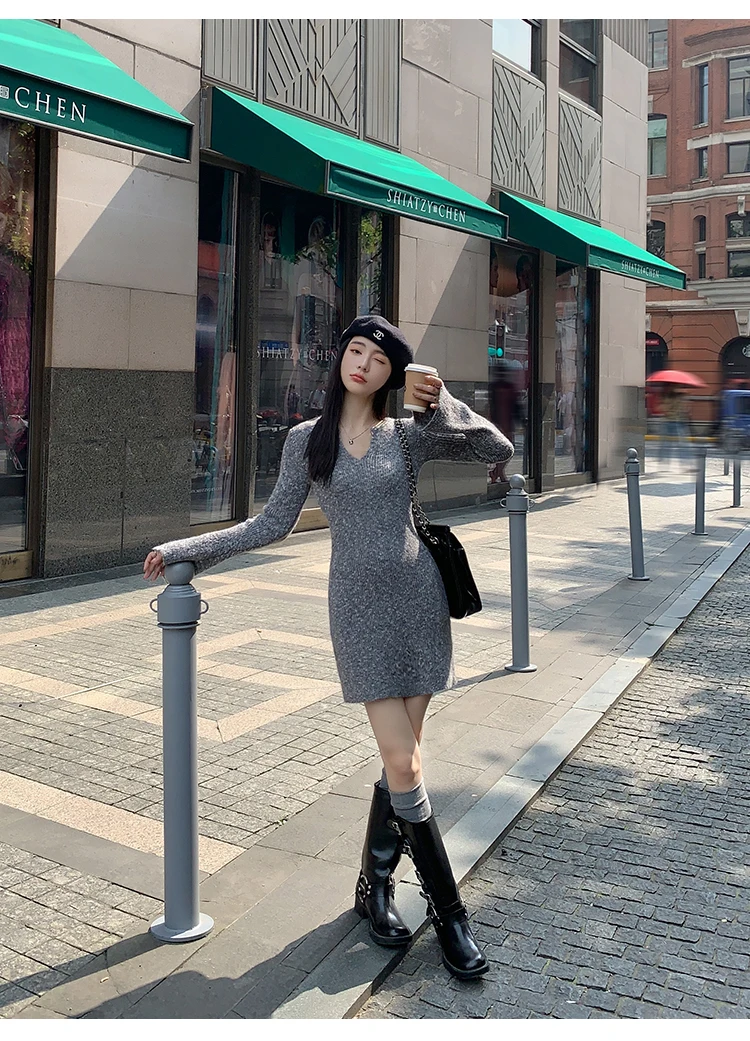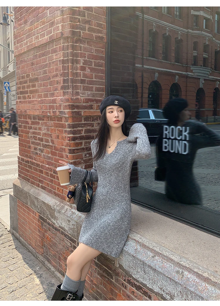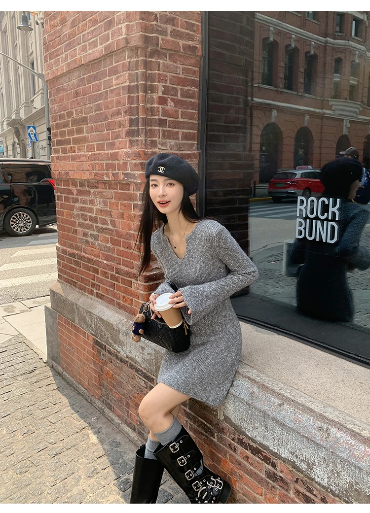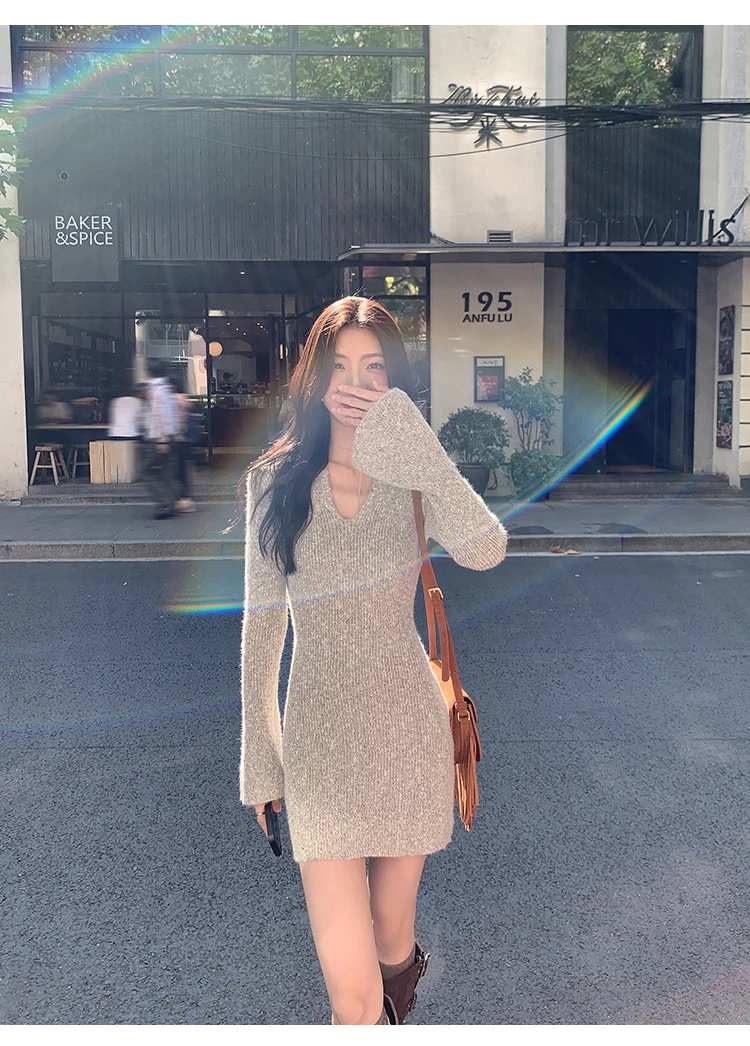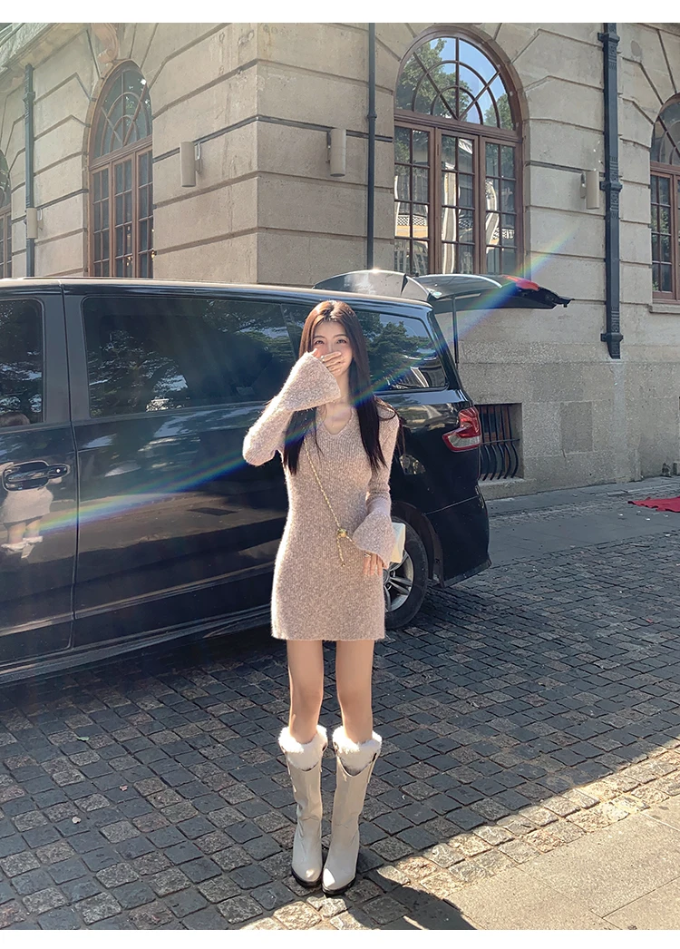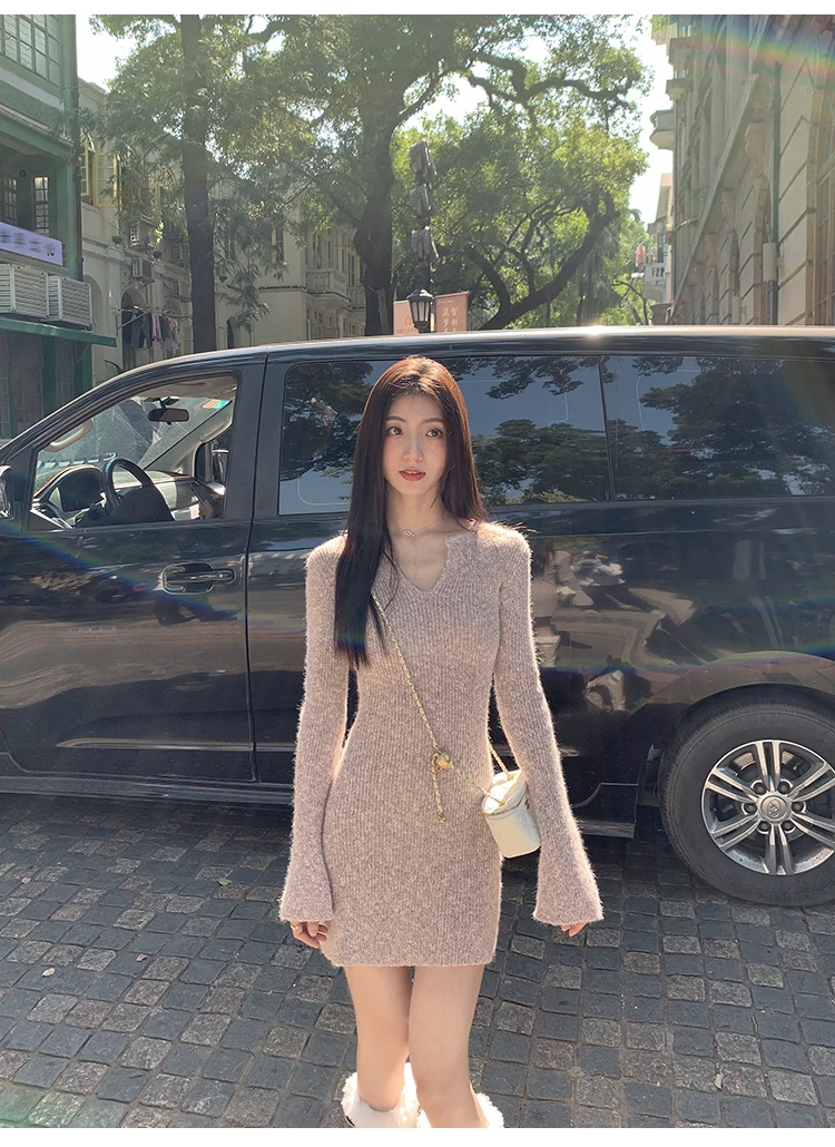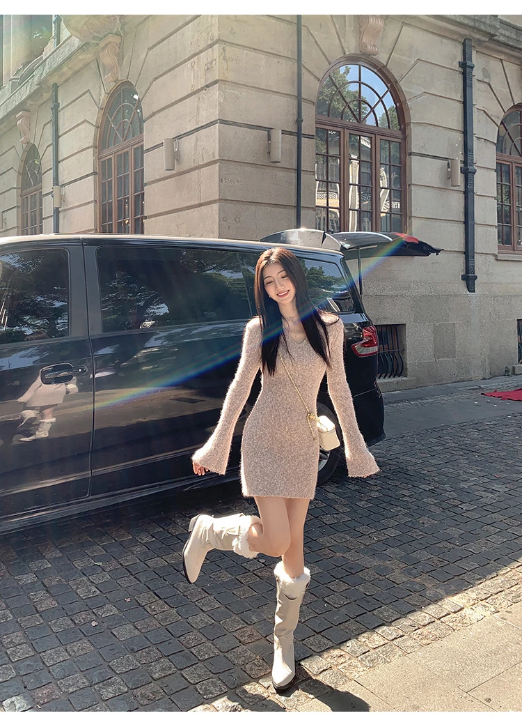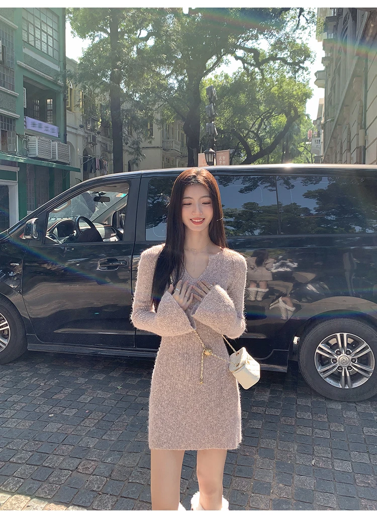 Knitting Sexy Dress for Women Slim Casual Flare Sleeve Gentle Hotsweet Warm Fashion Inner Clothing Autumn Winter Vestidos Soft
