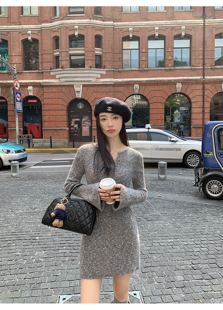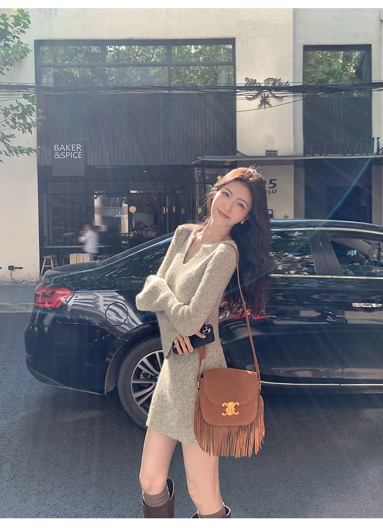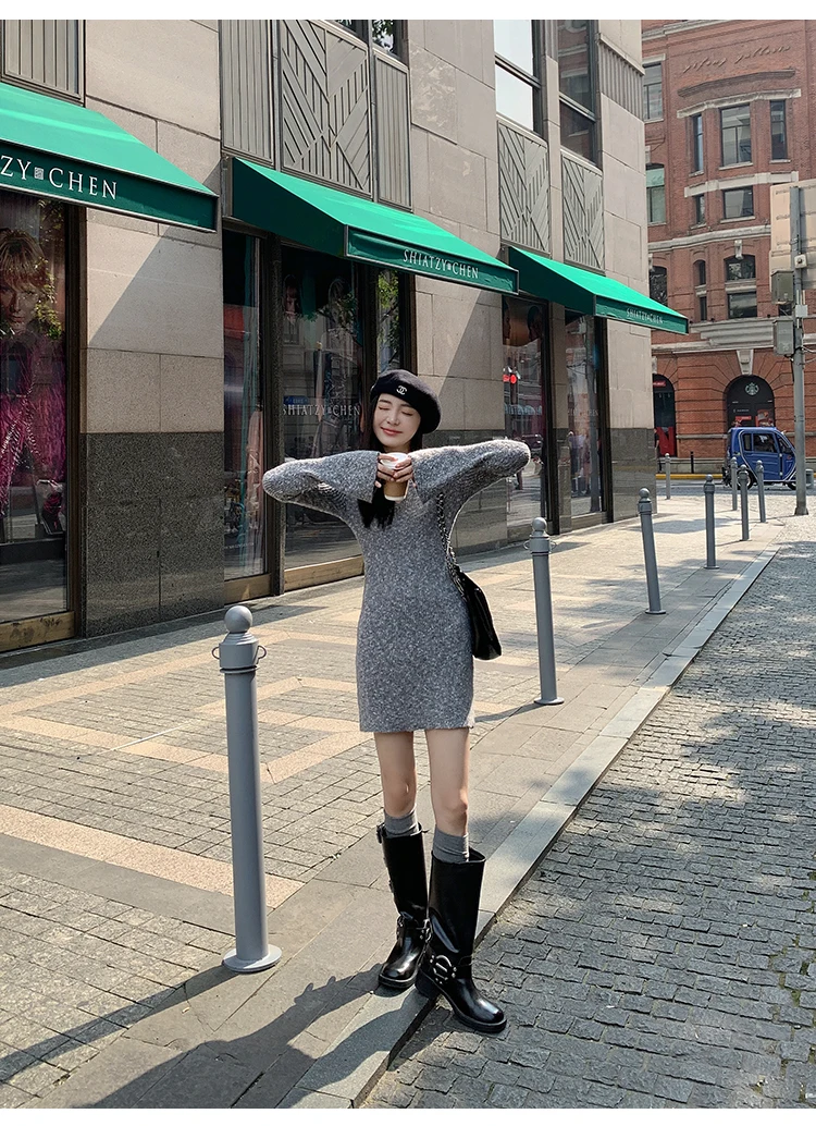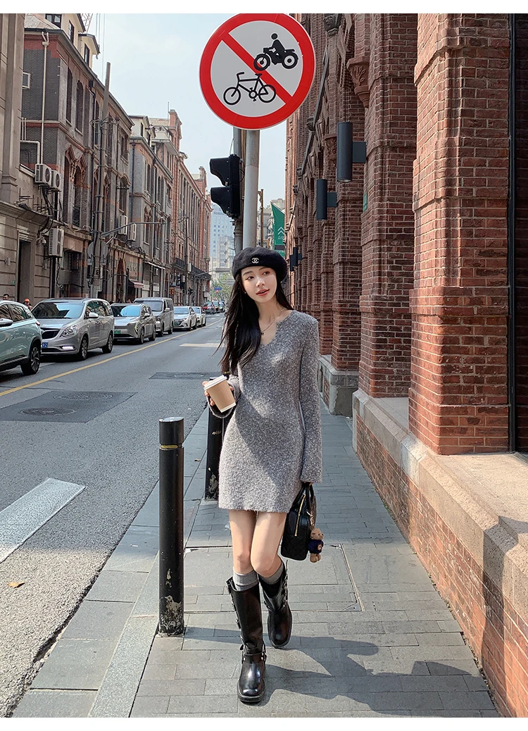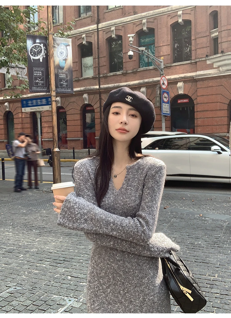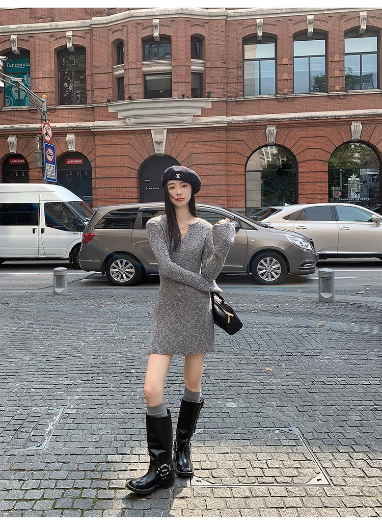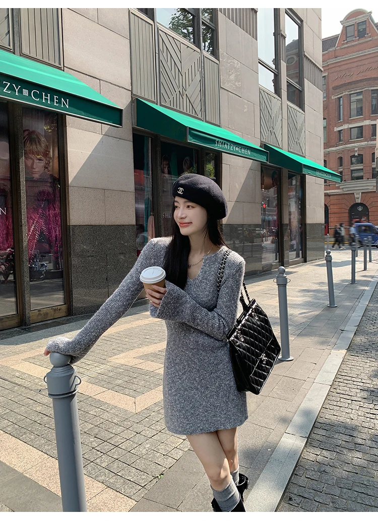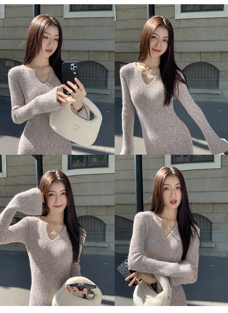 Knitting Sexy Dress for Women Slim Casual Flare Sleeve Gentle Hotsweet Warm Fashion Inner Clothing Autumn Winter Vestidos Soft