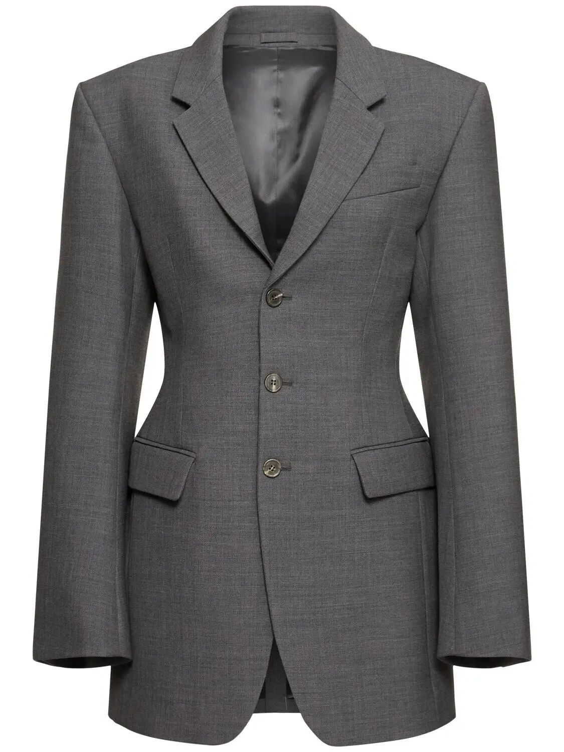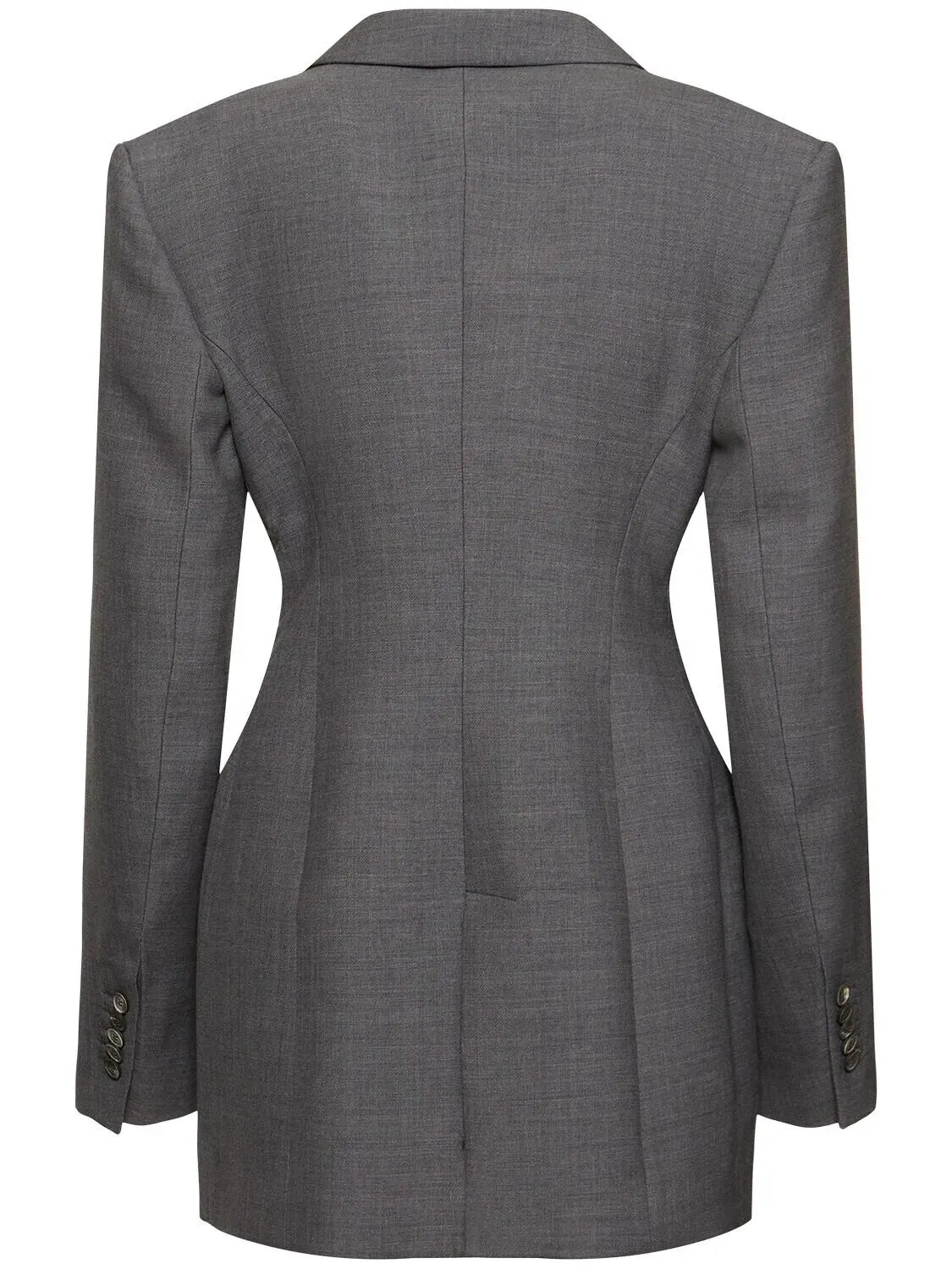 KWTX 2025 Grey Slim Fit Blazer Women's Stylish 3-Button Tapered Waist Spring Summer Light Jacket Office Chic Coat