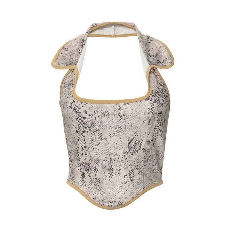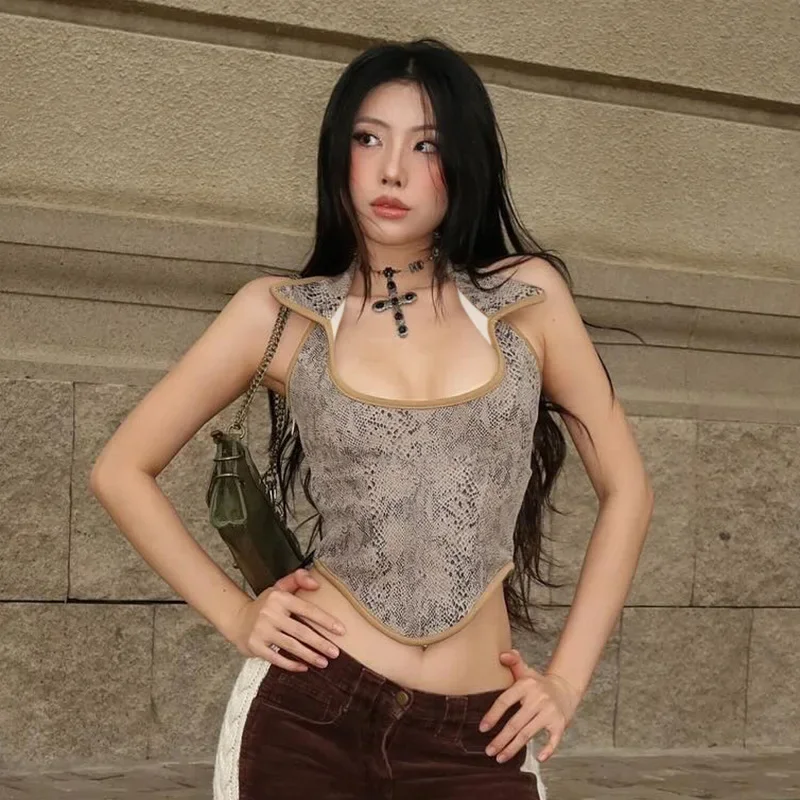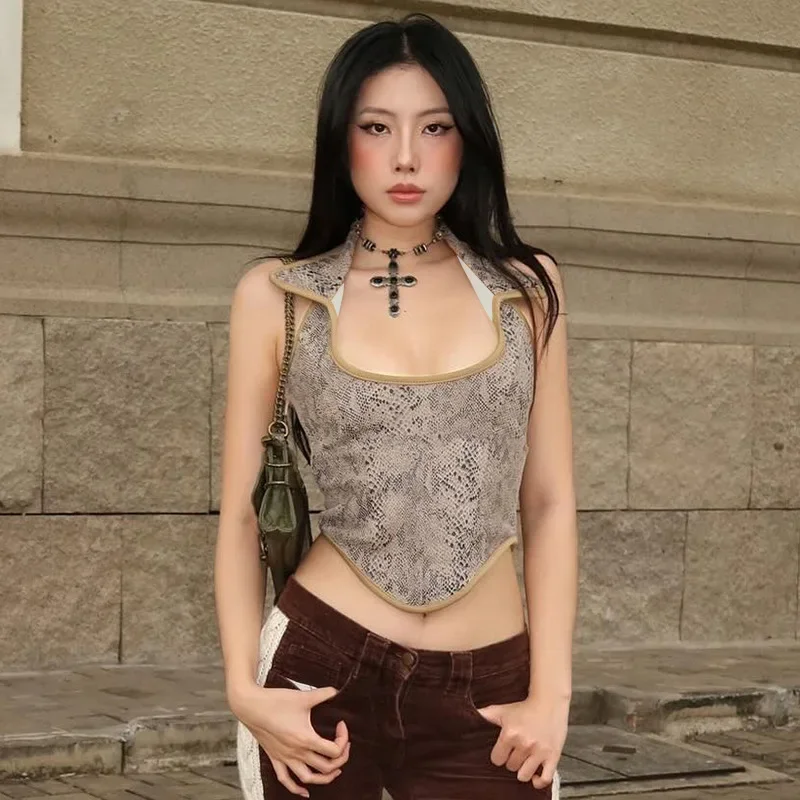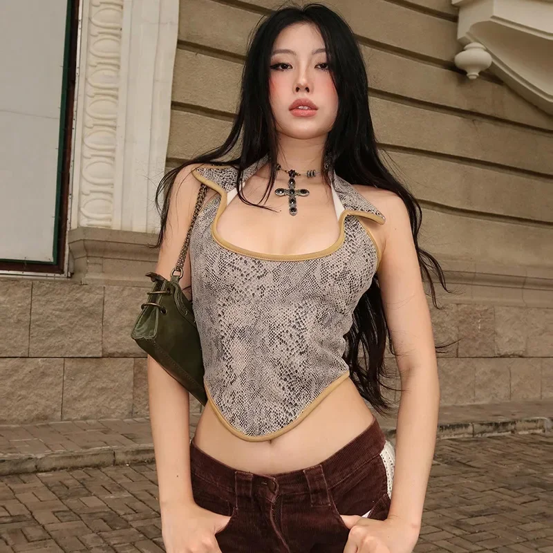Low Cut Streetwear Y2k Accessories Crop Top Sleeveless Halter Tops Women Edgy Clothes Serpentine Turndown Collar Ropa De Mujer