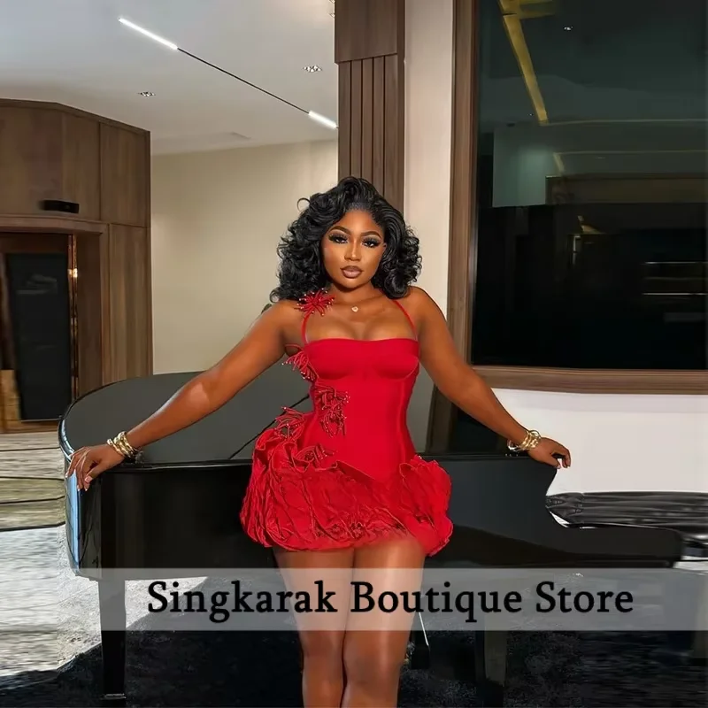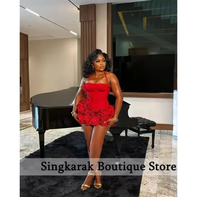 Red Birthday Dresses Baddie Black Girl Halter Neck Mini Prom Dresses Sweertheart Ruffles Wedding Party Dress Customized
