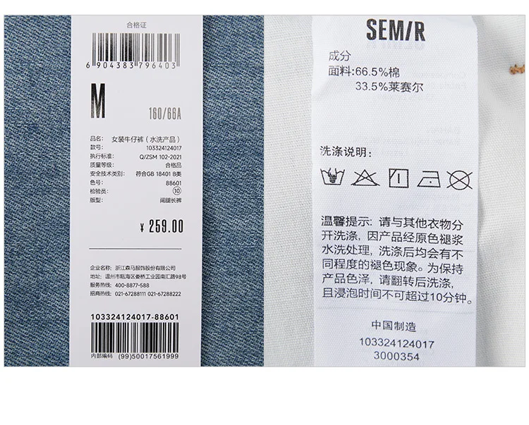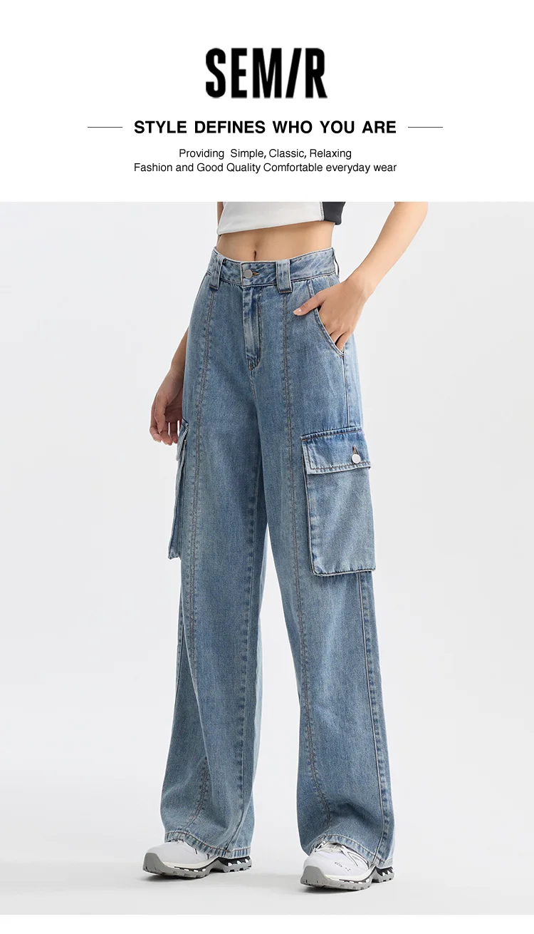 Semir Jeans Women High-Street Style Wide-leg Trousers Summer 2024 New Version Workwear Trousers Trendy and Cool