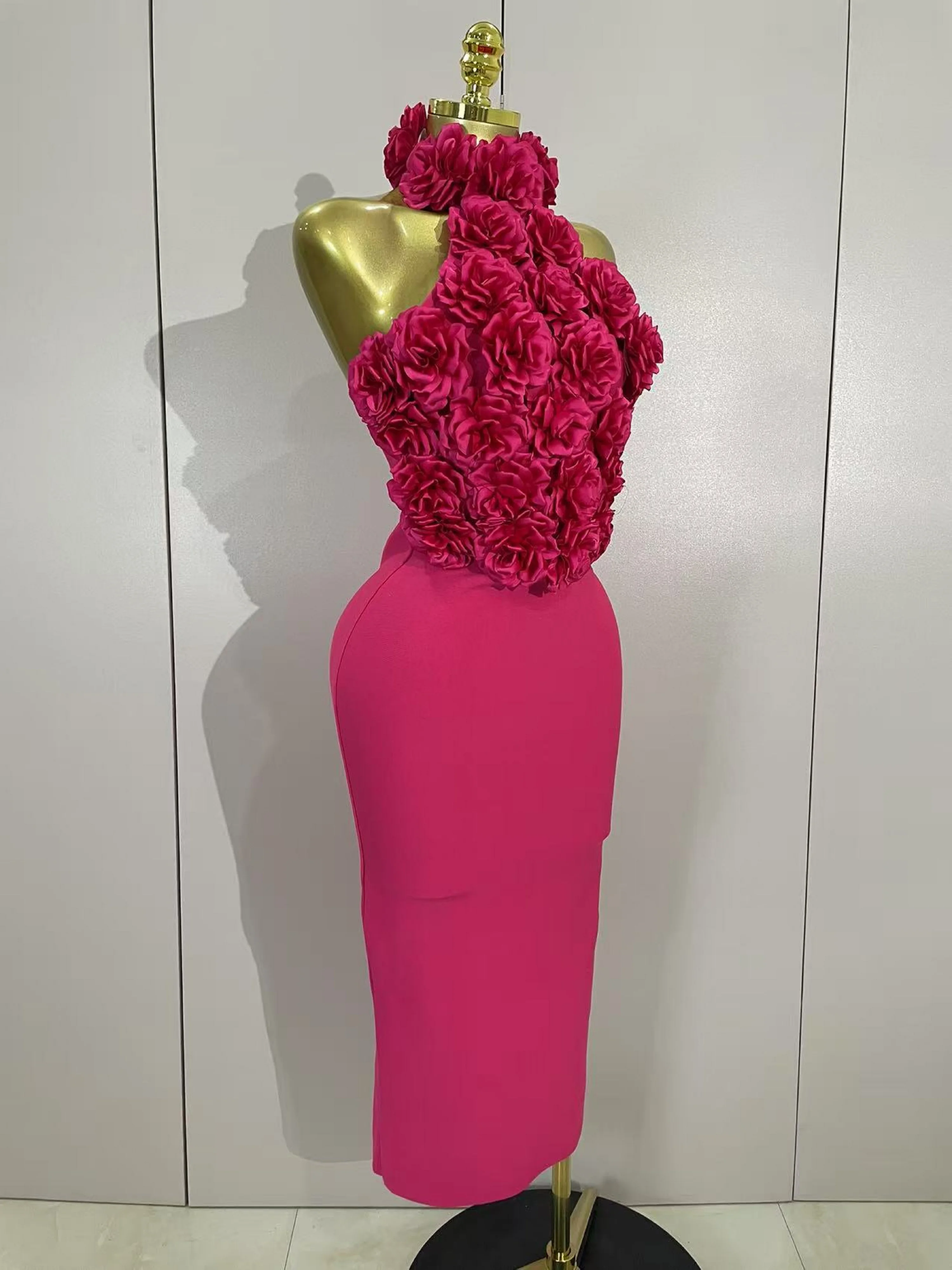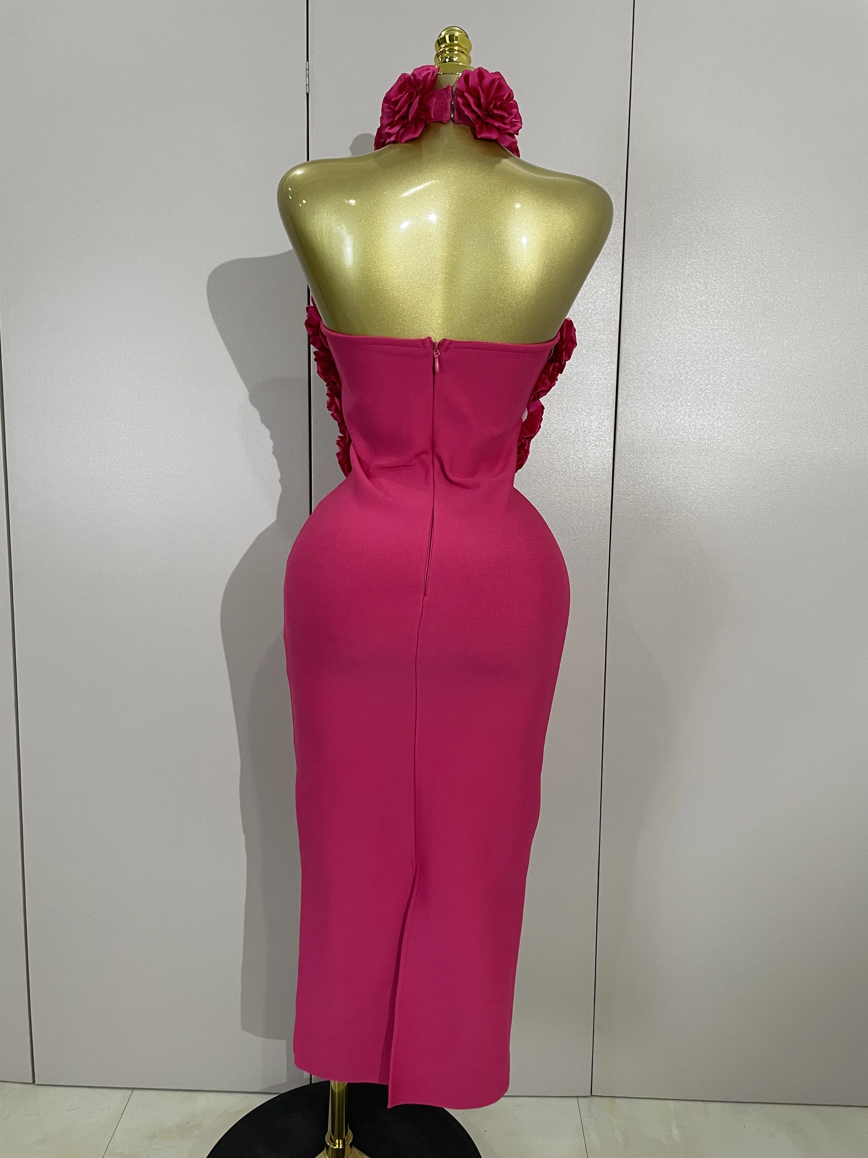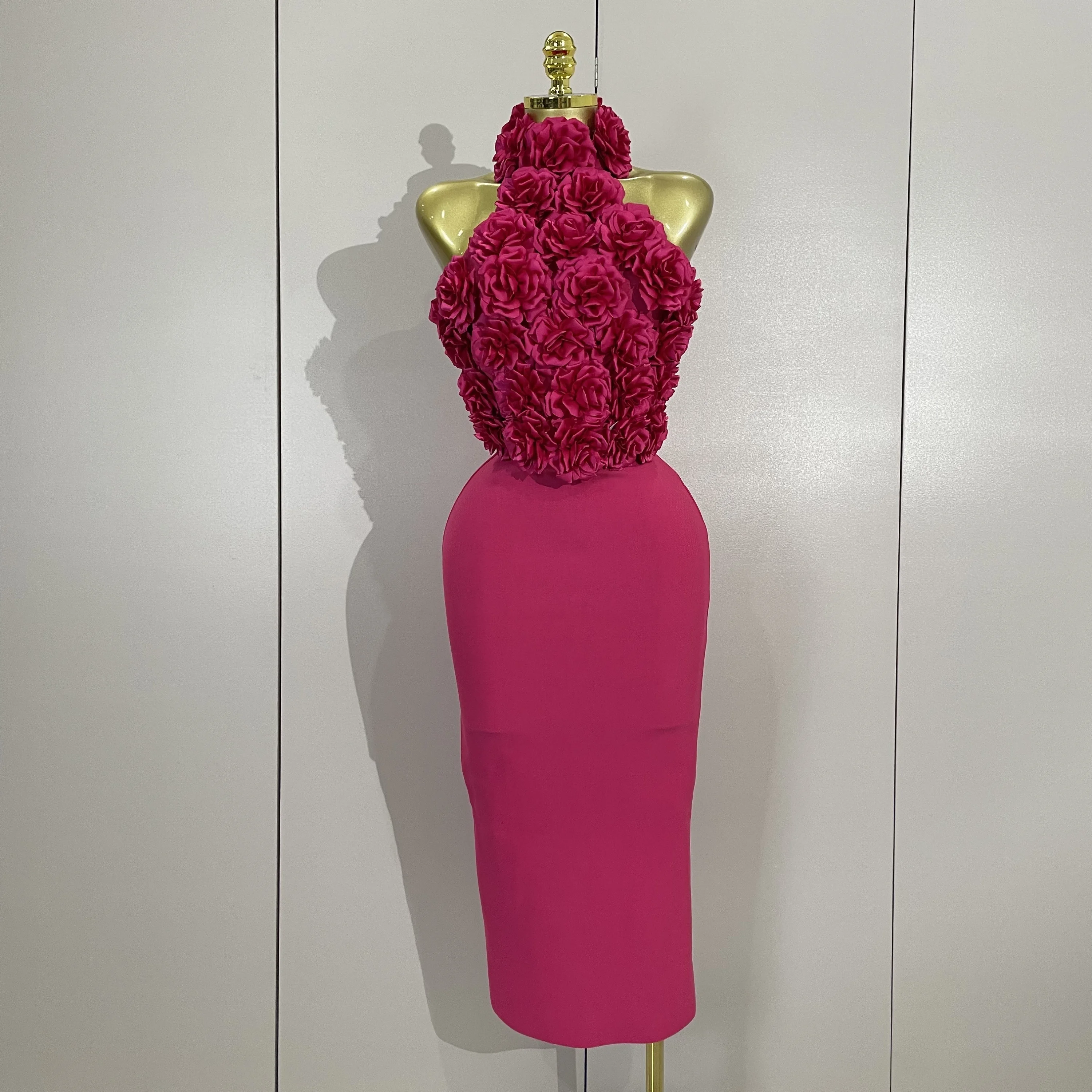 Sexy Halter Backless 3D Flower Bodycon Bandage Dress Women Celebrity Elegant Cocktail Luxury Birthfay Party Dress Stage Wear