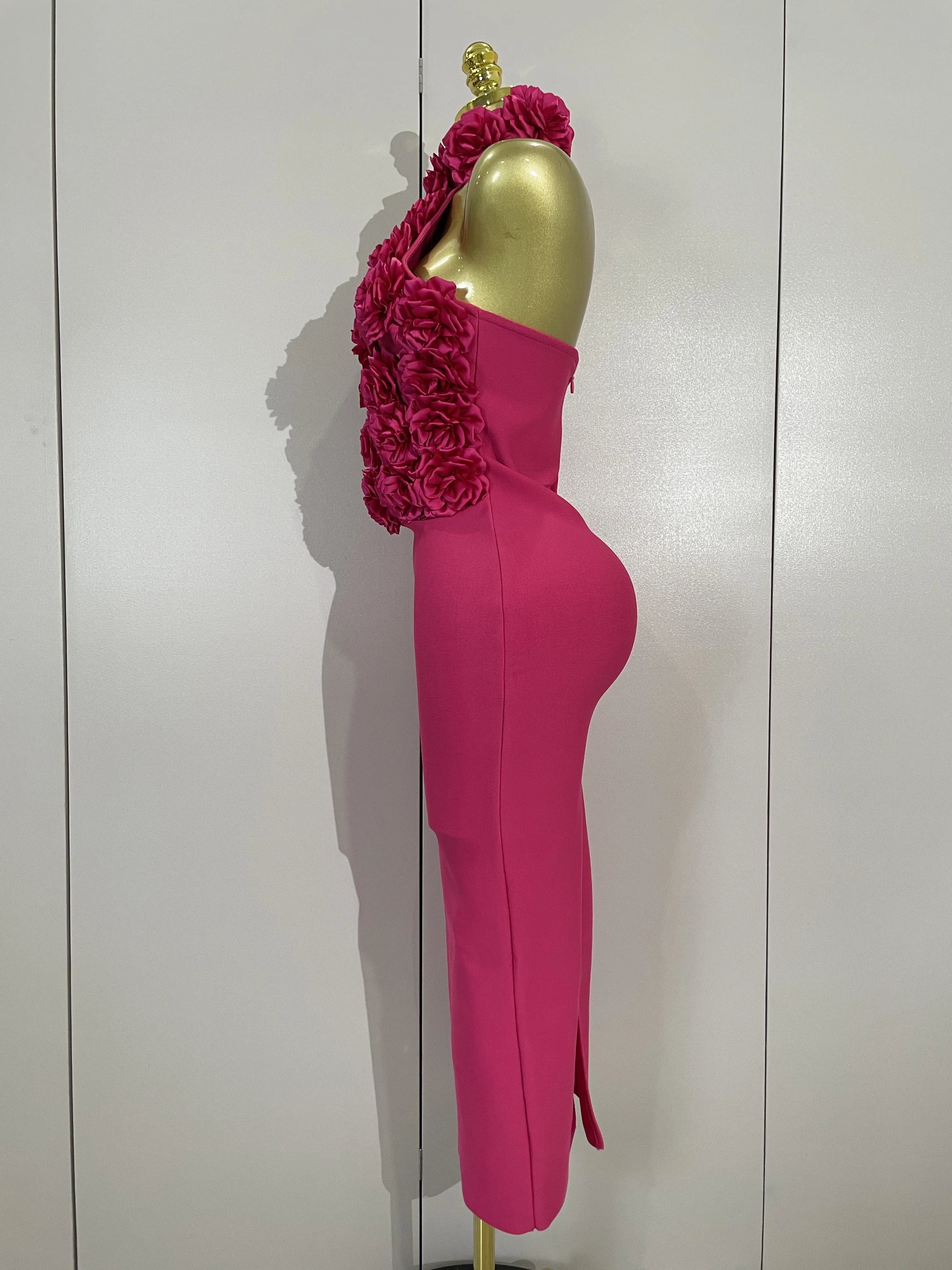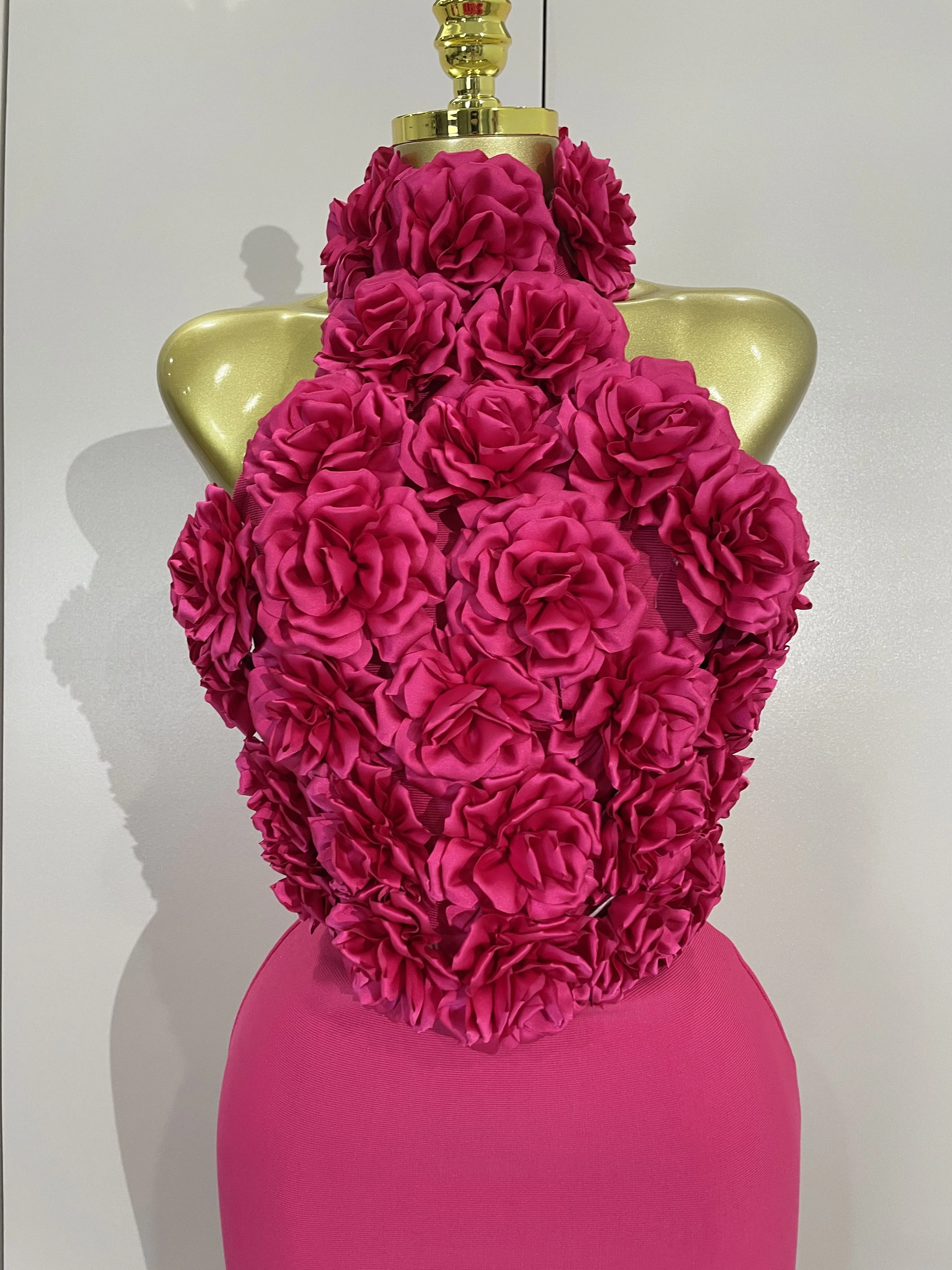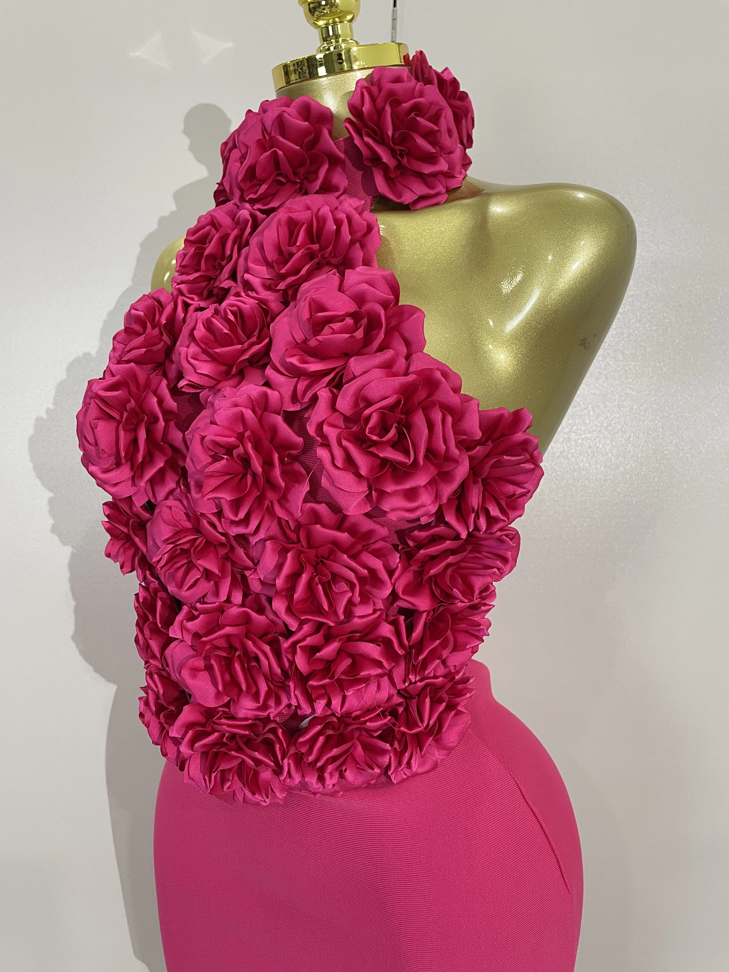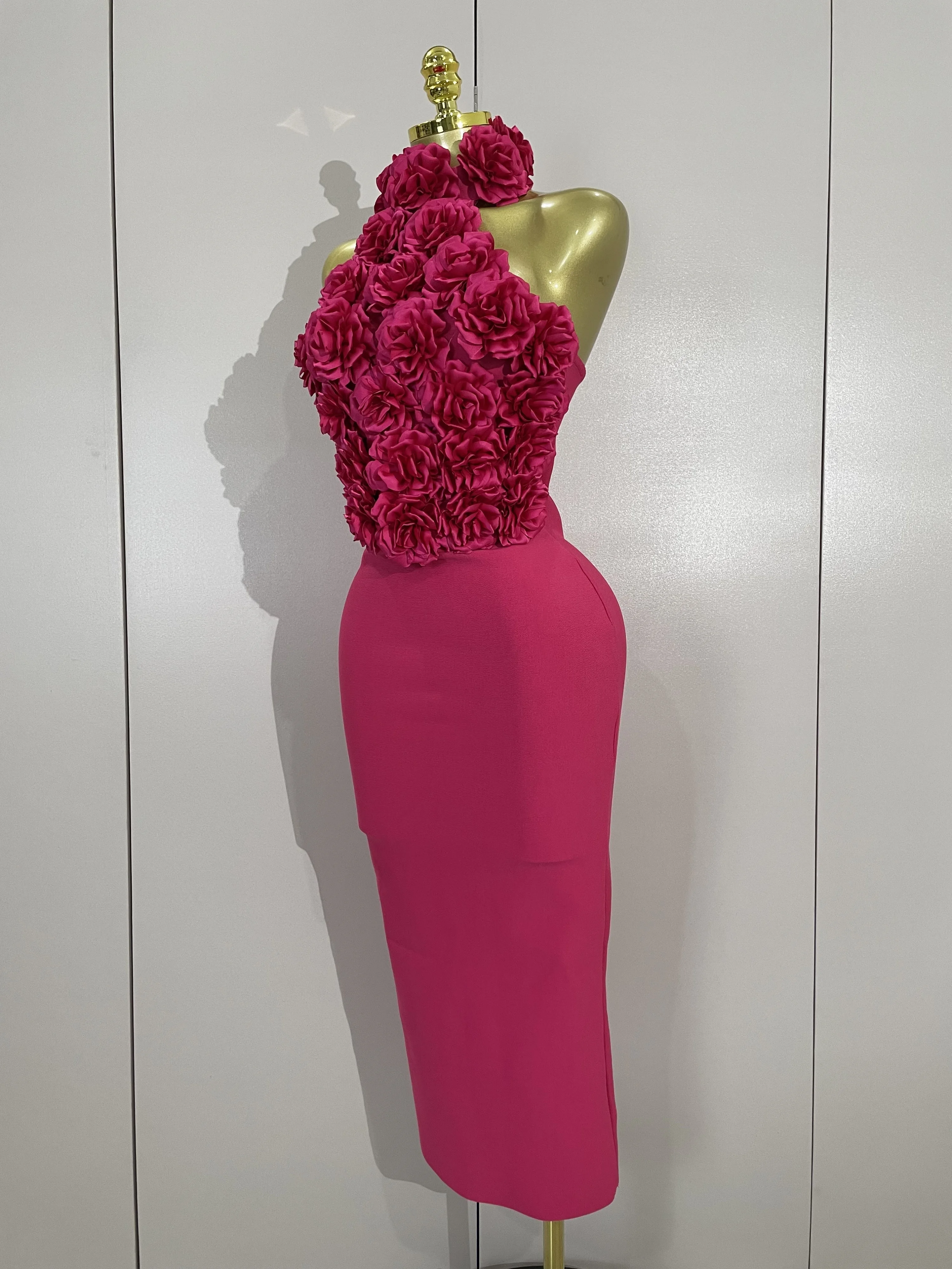 Sexy Halter Backless 3D Flower Bodycon Bandage Dress Women Celebrity Elegant Cocktail Luxury Birthfay Party Dress Stage Wear