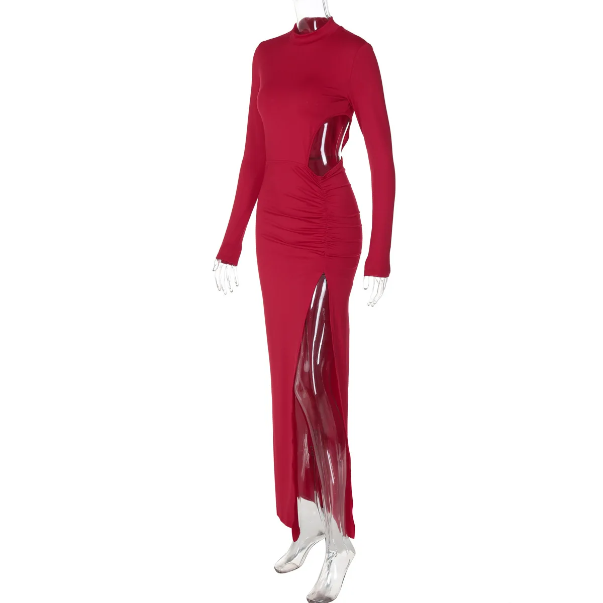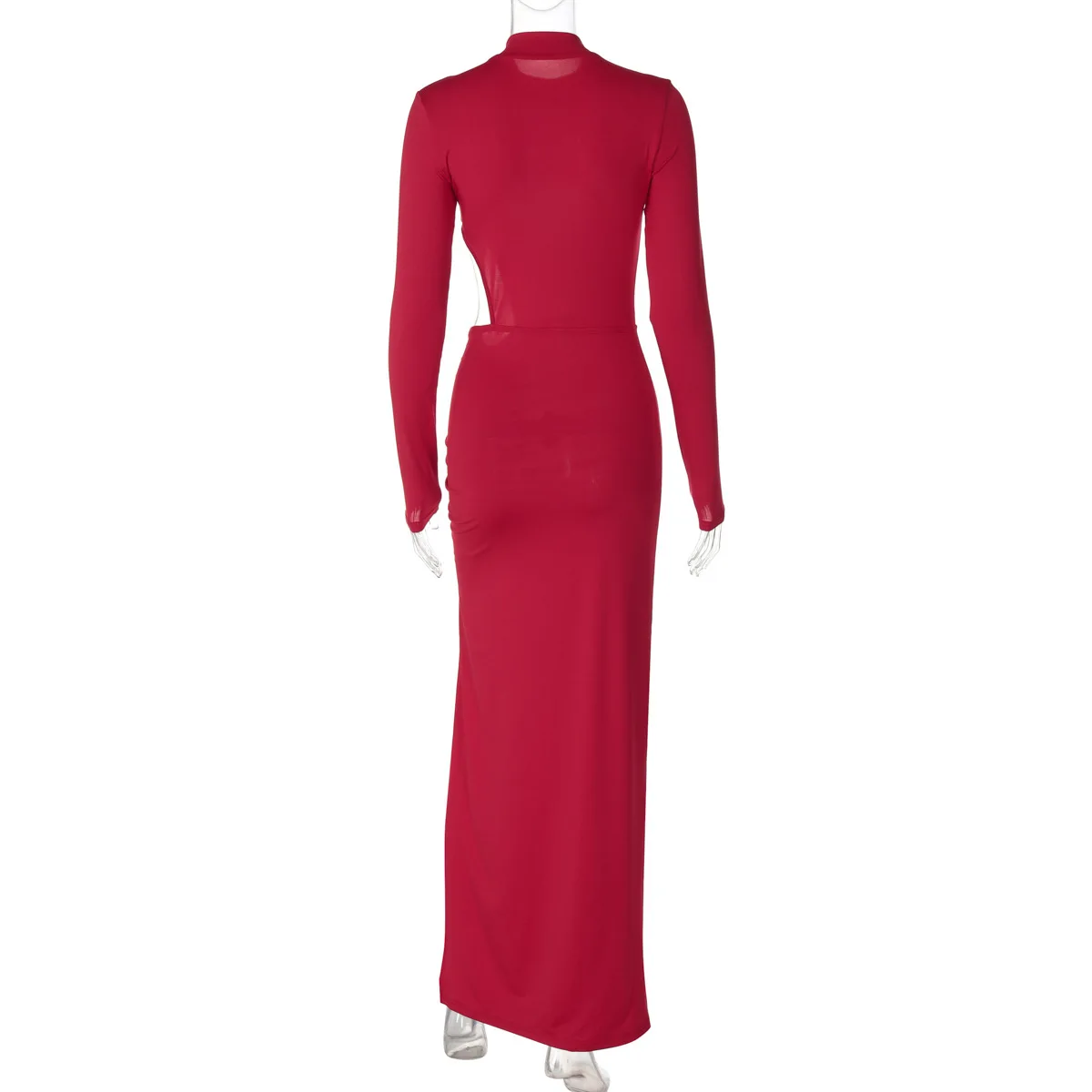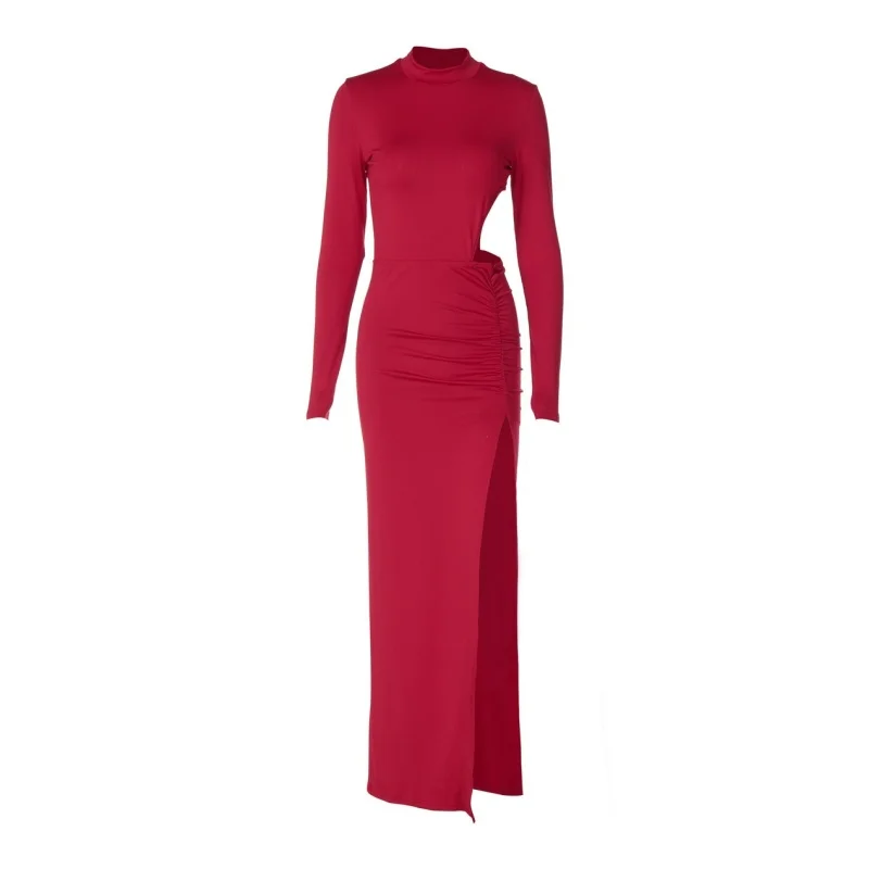 Solid Color Maxi Dresses For Women Evening Party Clothing Hollow Out Sexy Vestidos De Mujer Long Sleeve Robe Femme Été Split
