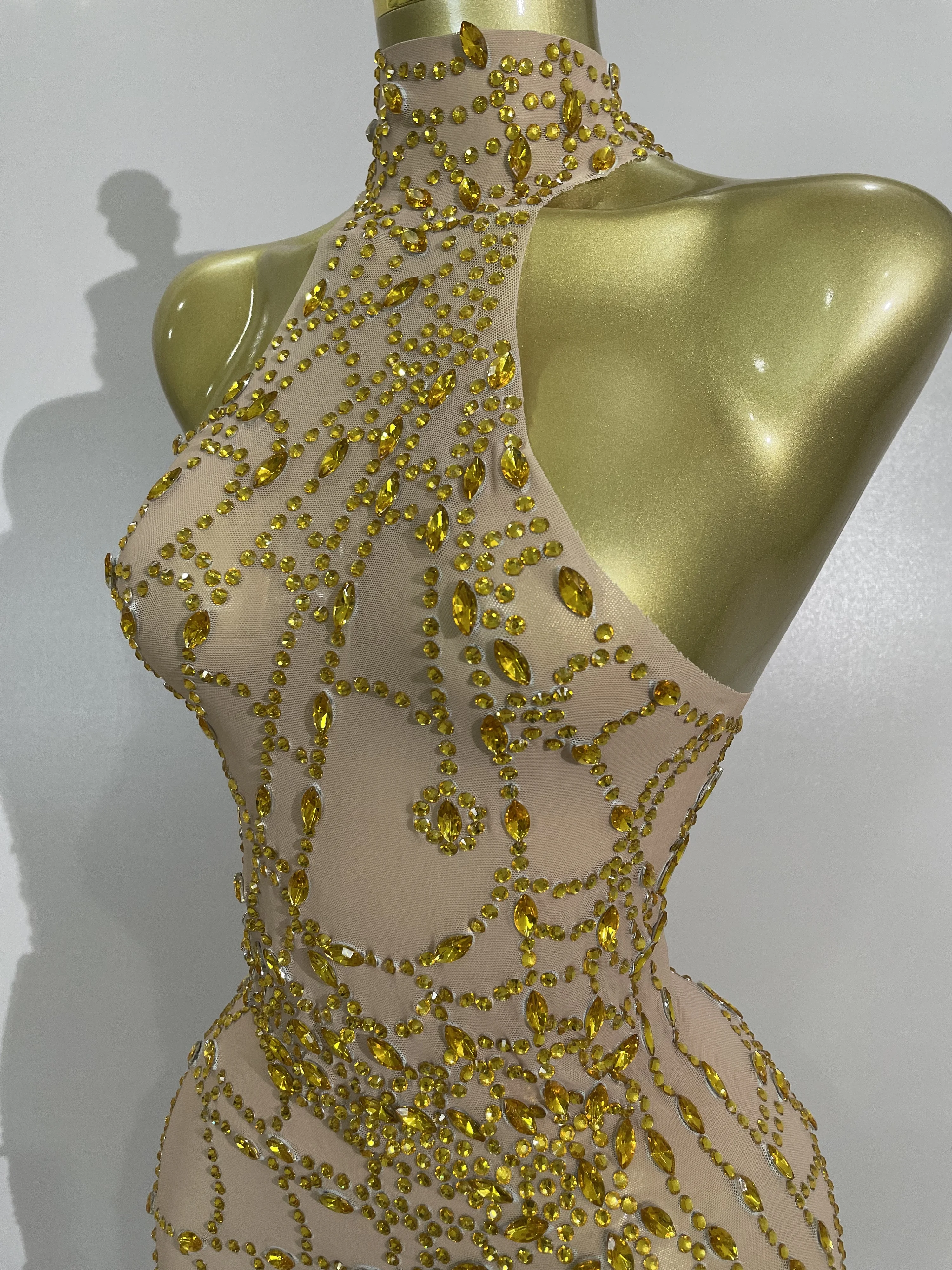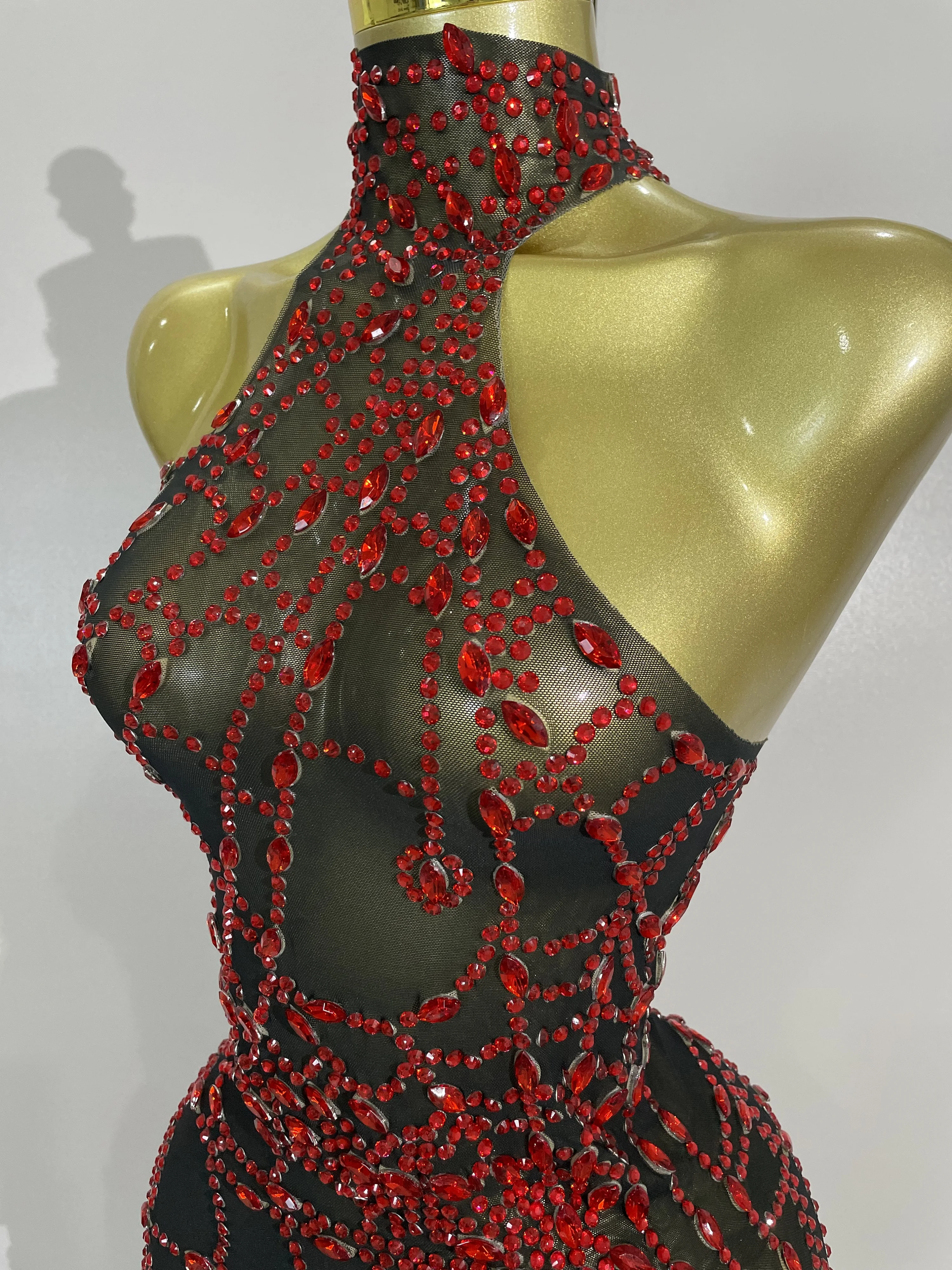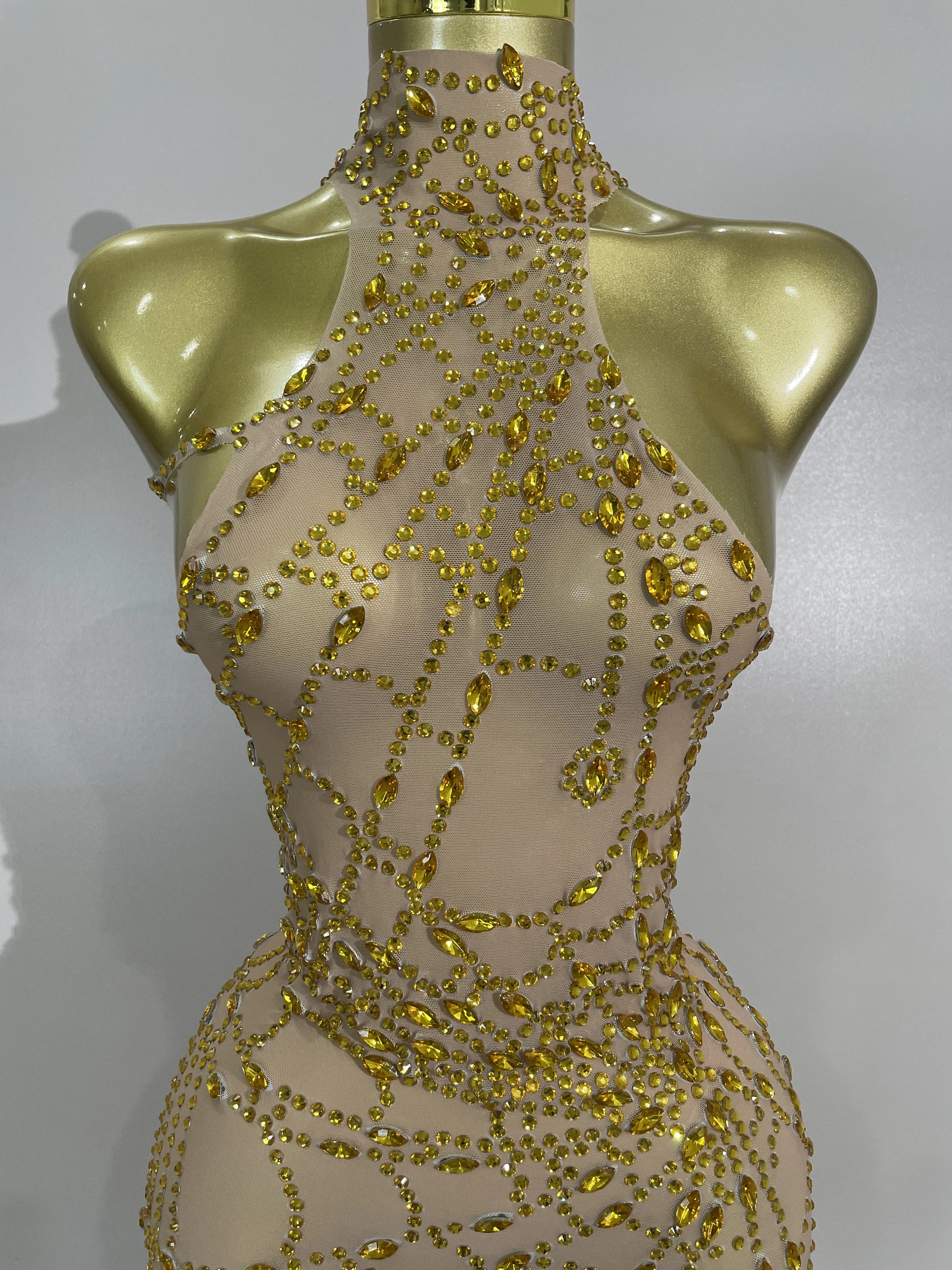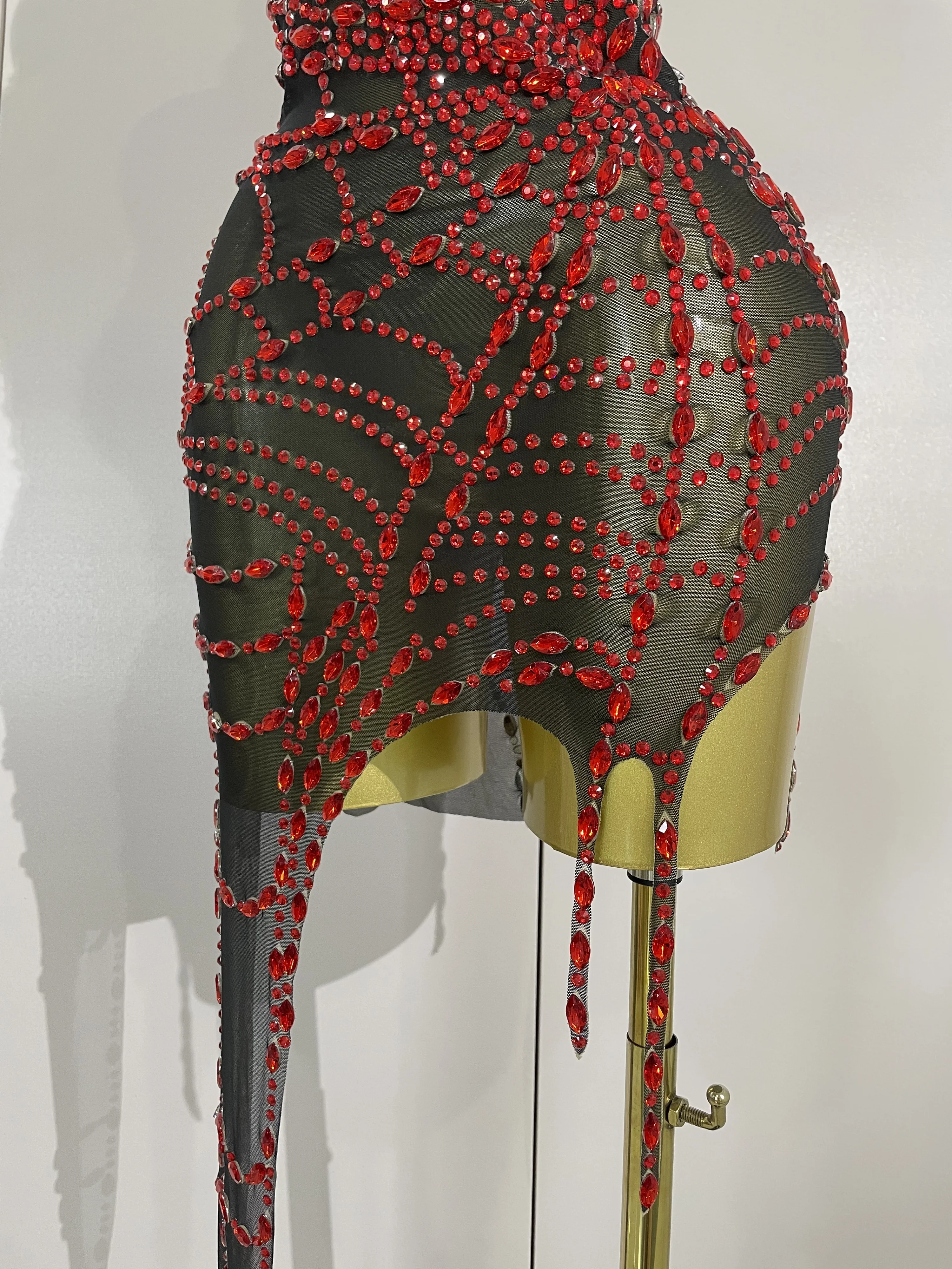 STOCK Sparkly Diamond Sexy Mesh Asymmetric Bodycon Mini Dress Women Nightclub Bar Party Show Gogo Dancer Clothing Stage Costume