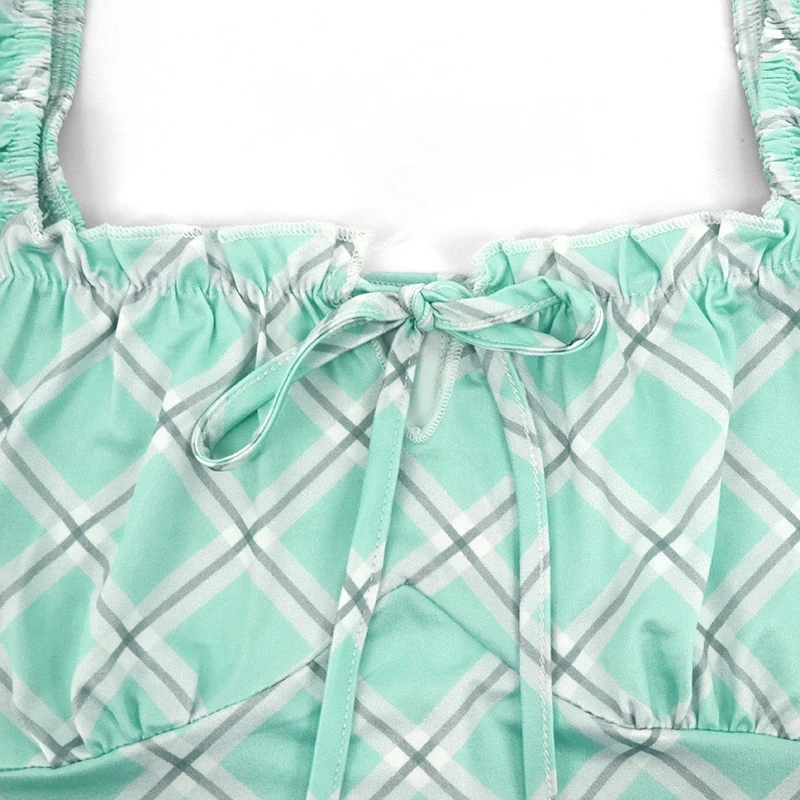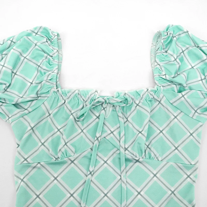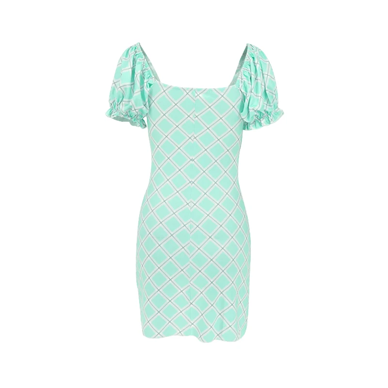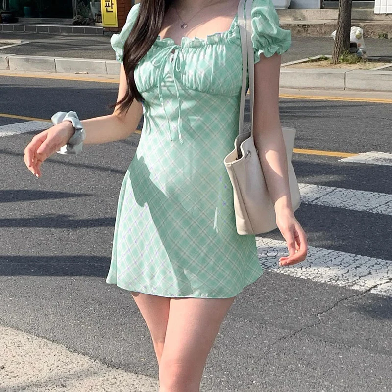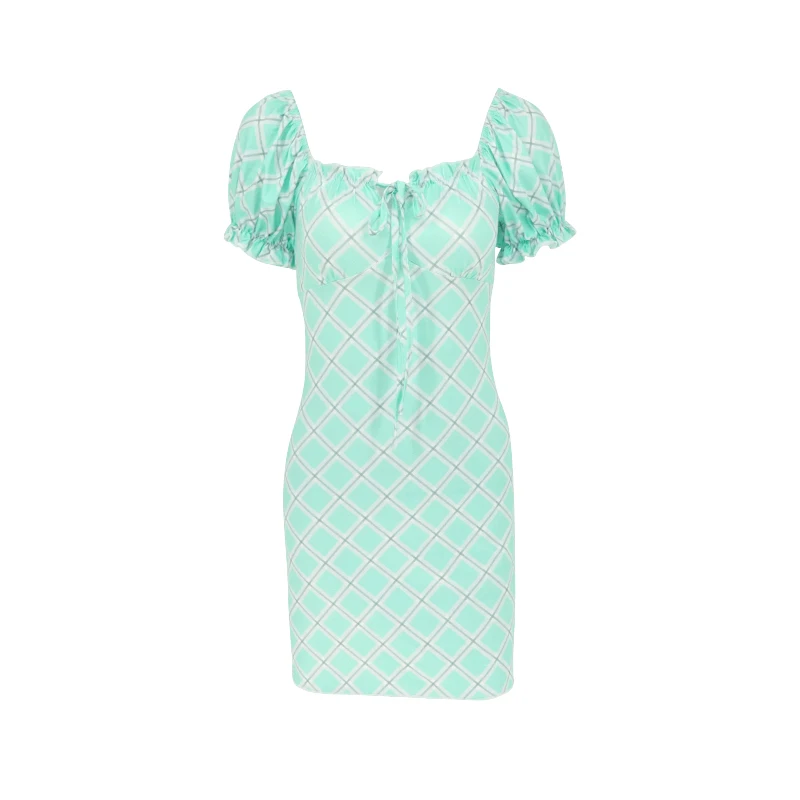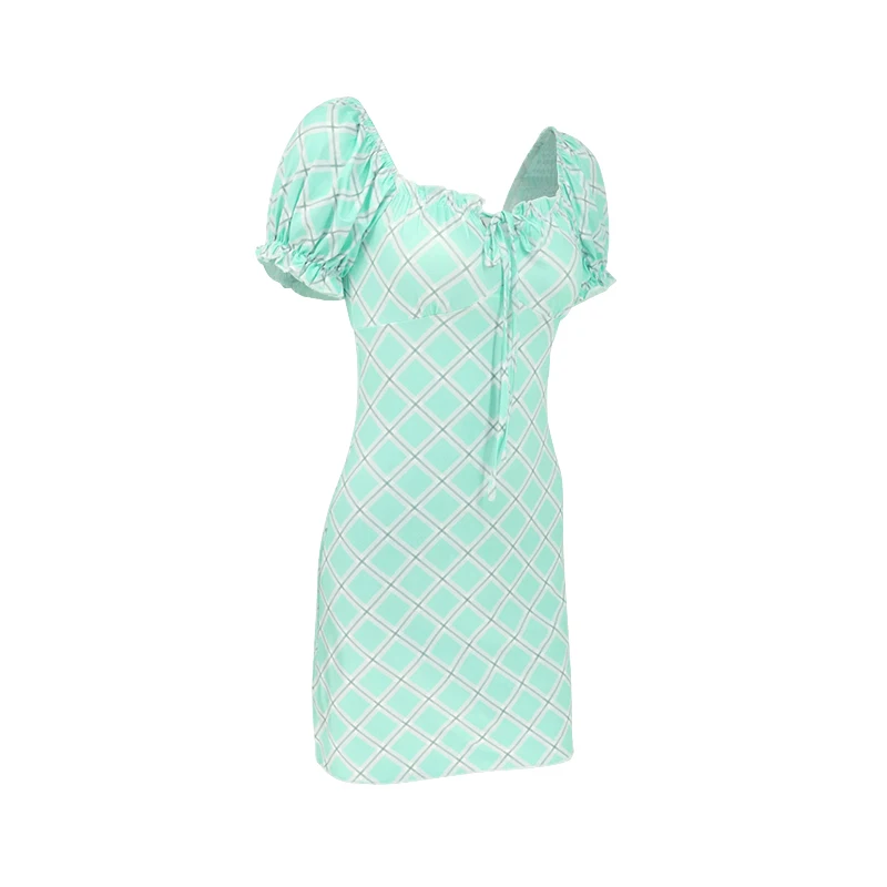 Women Sexy Dresses New Summer Streetwear Green Fashion Print Plaid Short Sleeve Mini Dress Club Party Female Elegant Tank Dress