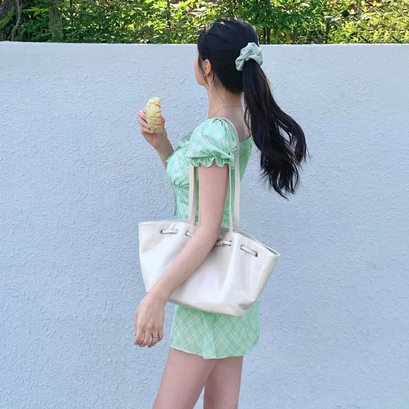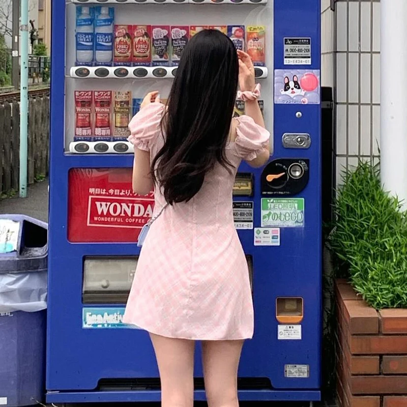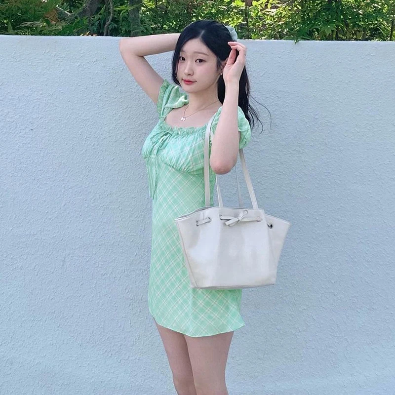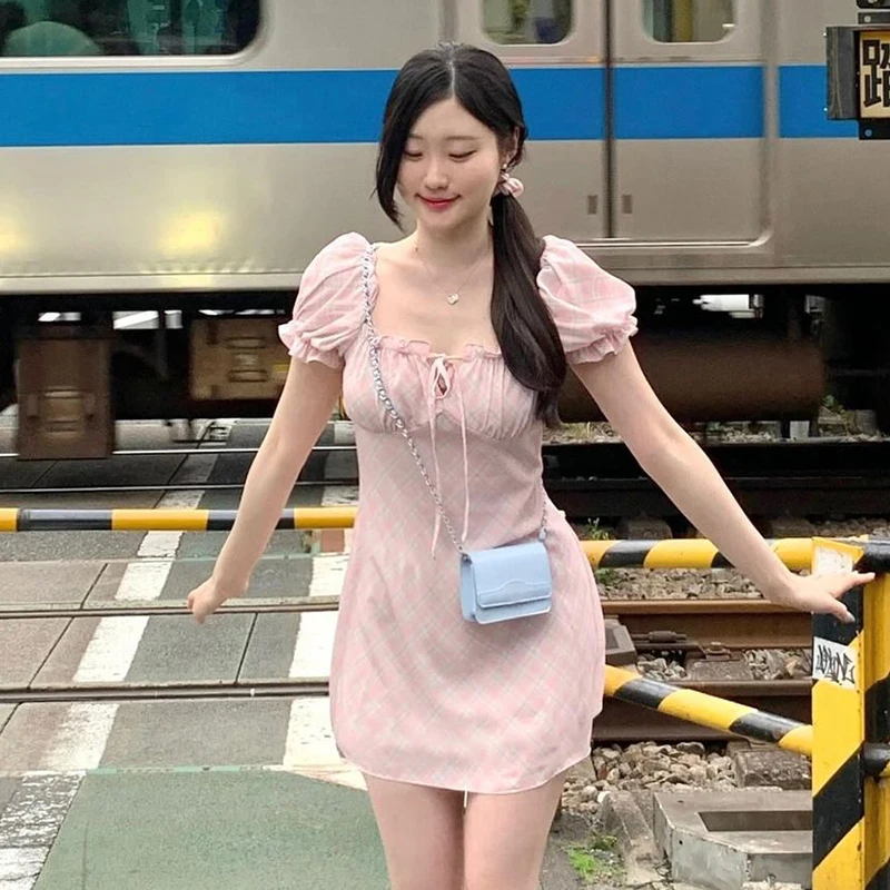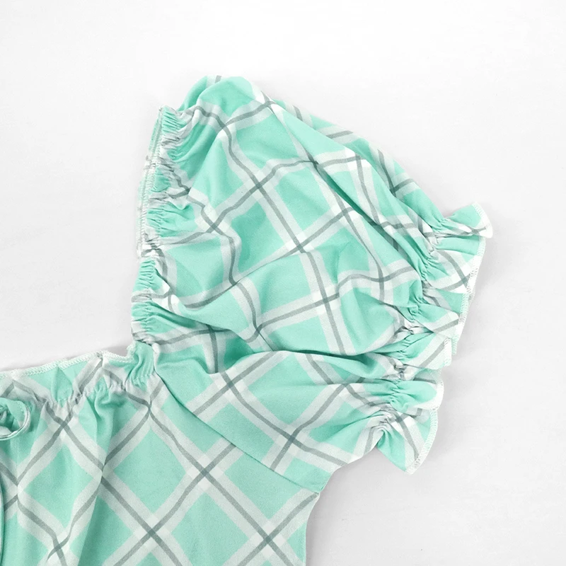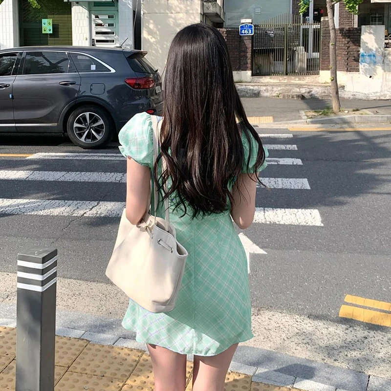 Women Sexy Dresses New Summer Streetwear Green Fashion Print Plaid Short Sleeve Mini Dress Club Party Female Elegant Tank Dress