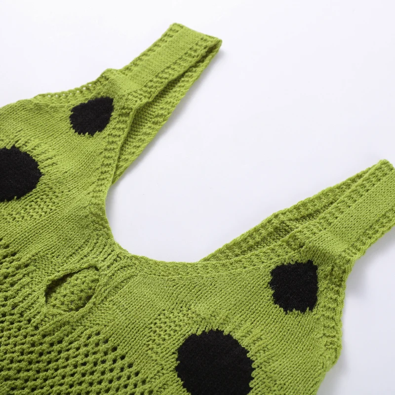 Model Number: Polka Dot Patchwork Knitted Sling Dresses