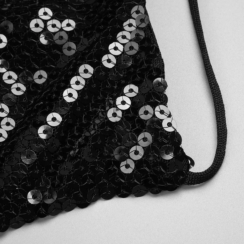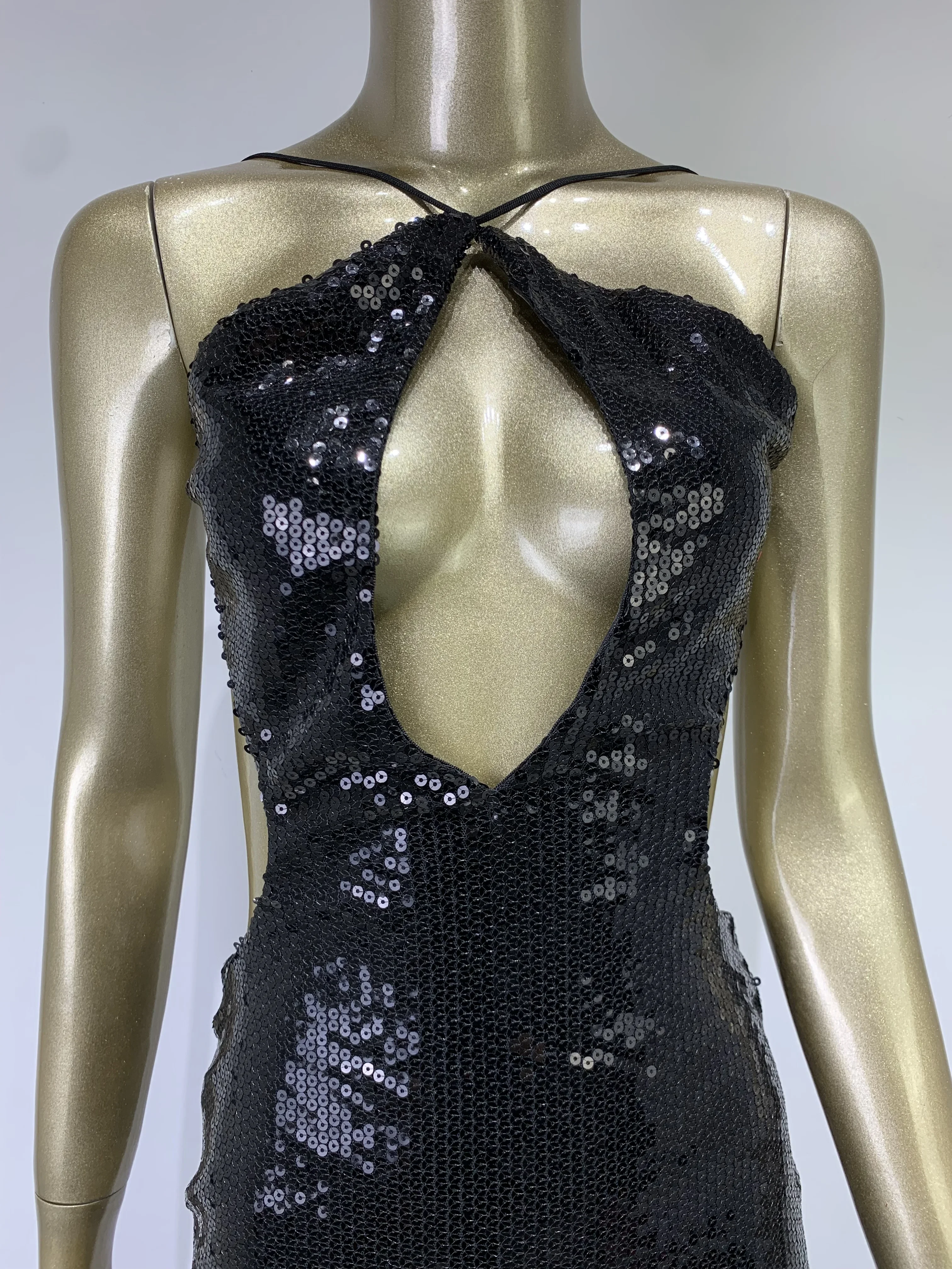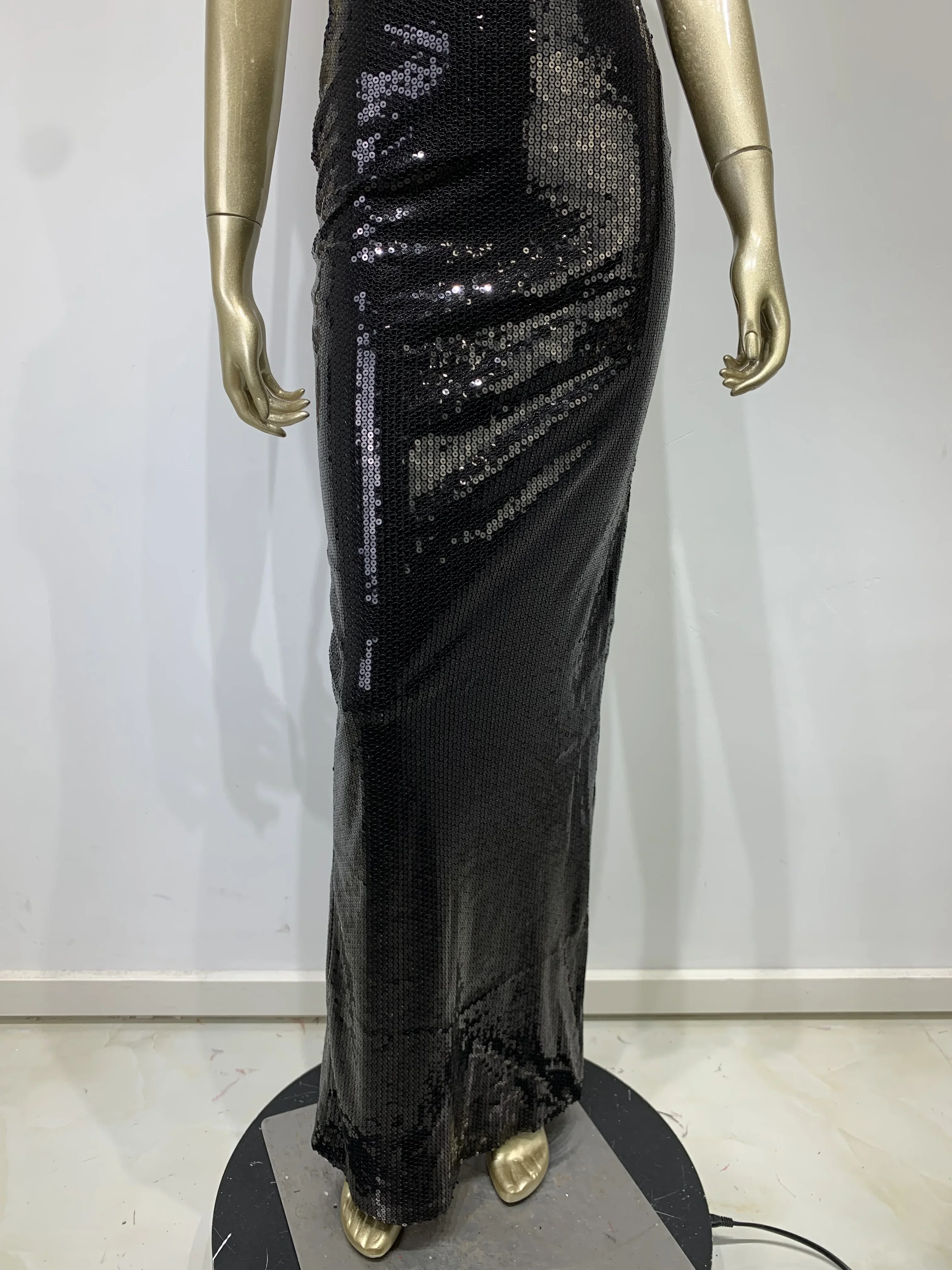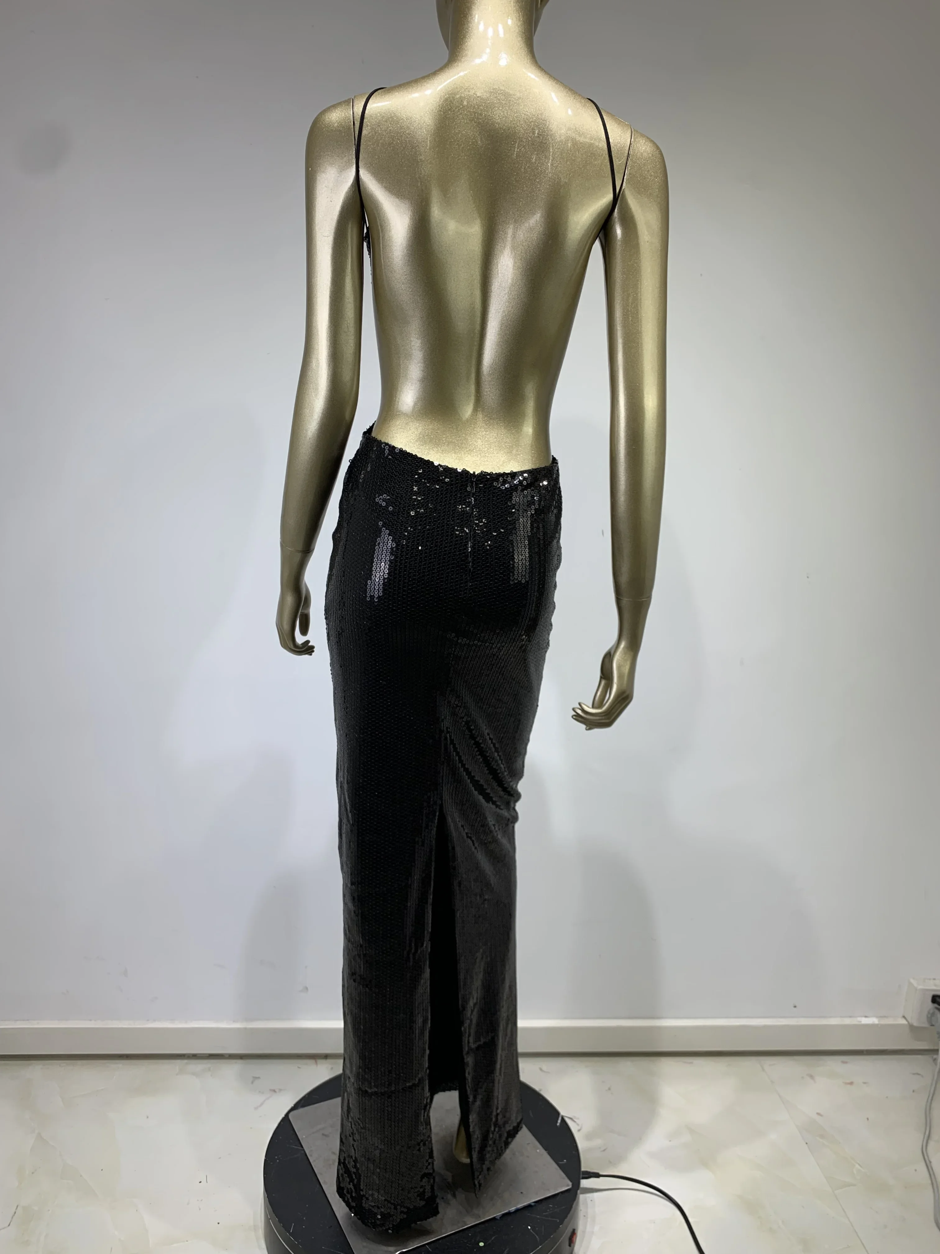 Women Summer Luxury Sexy Strap with Open Back Black Hollow Mesh Shining Long Dress Elegant Celebrity Evening Club Dress