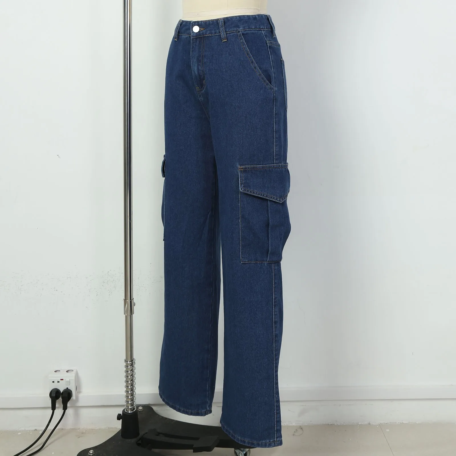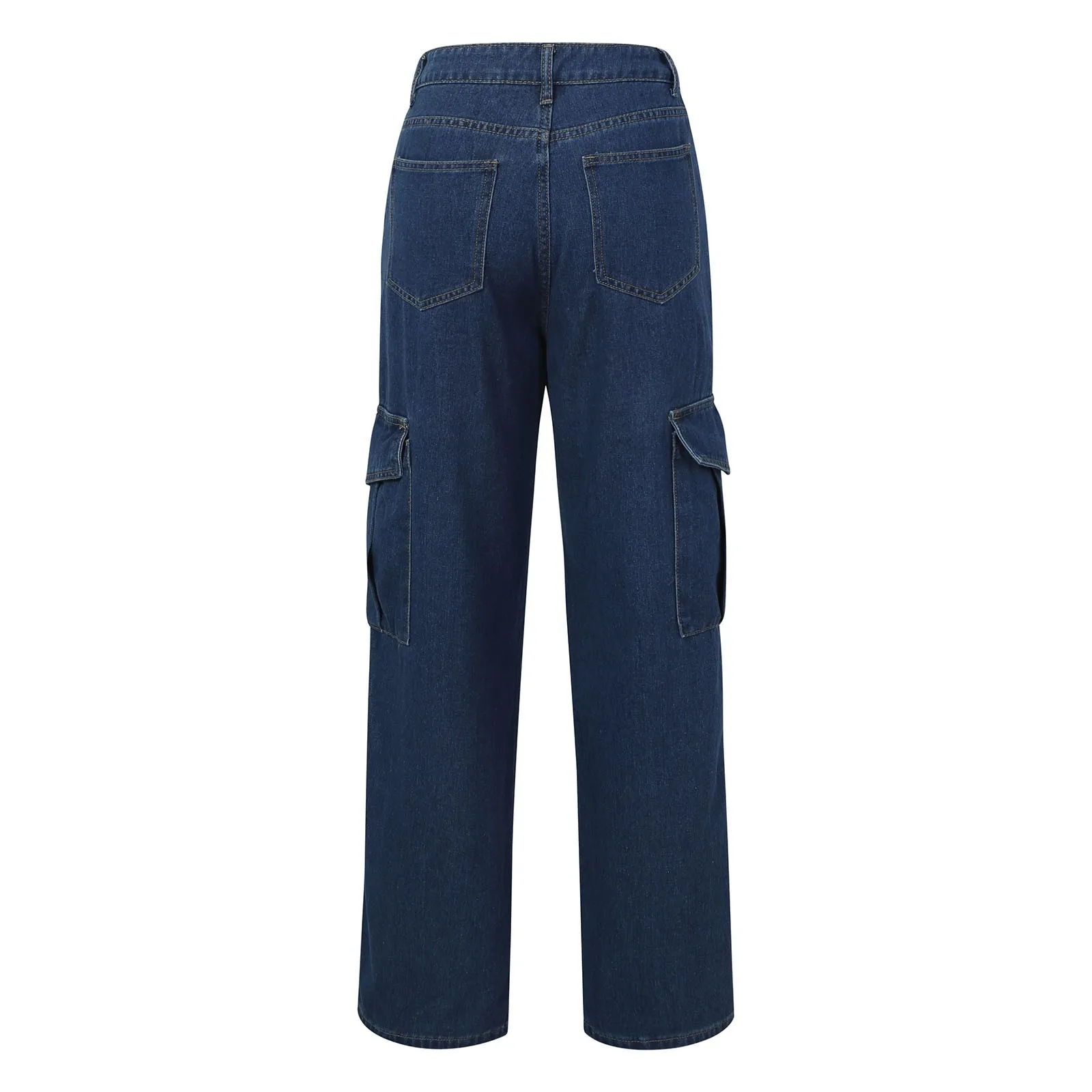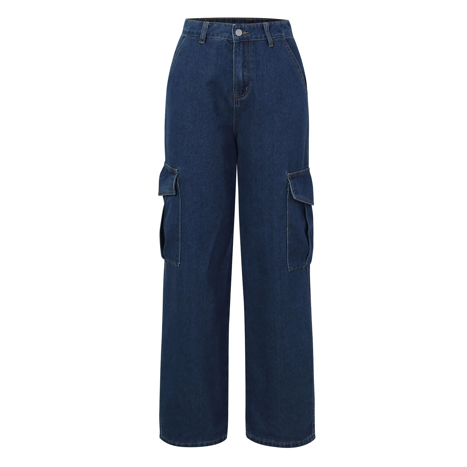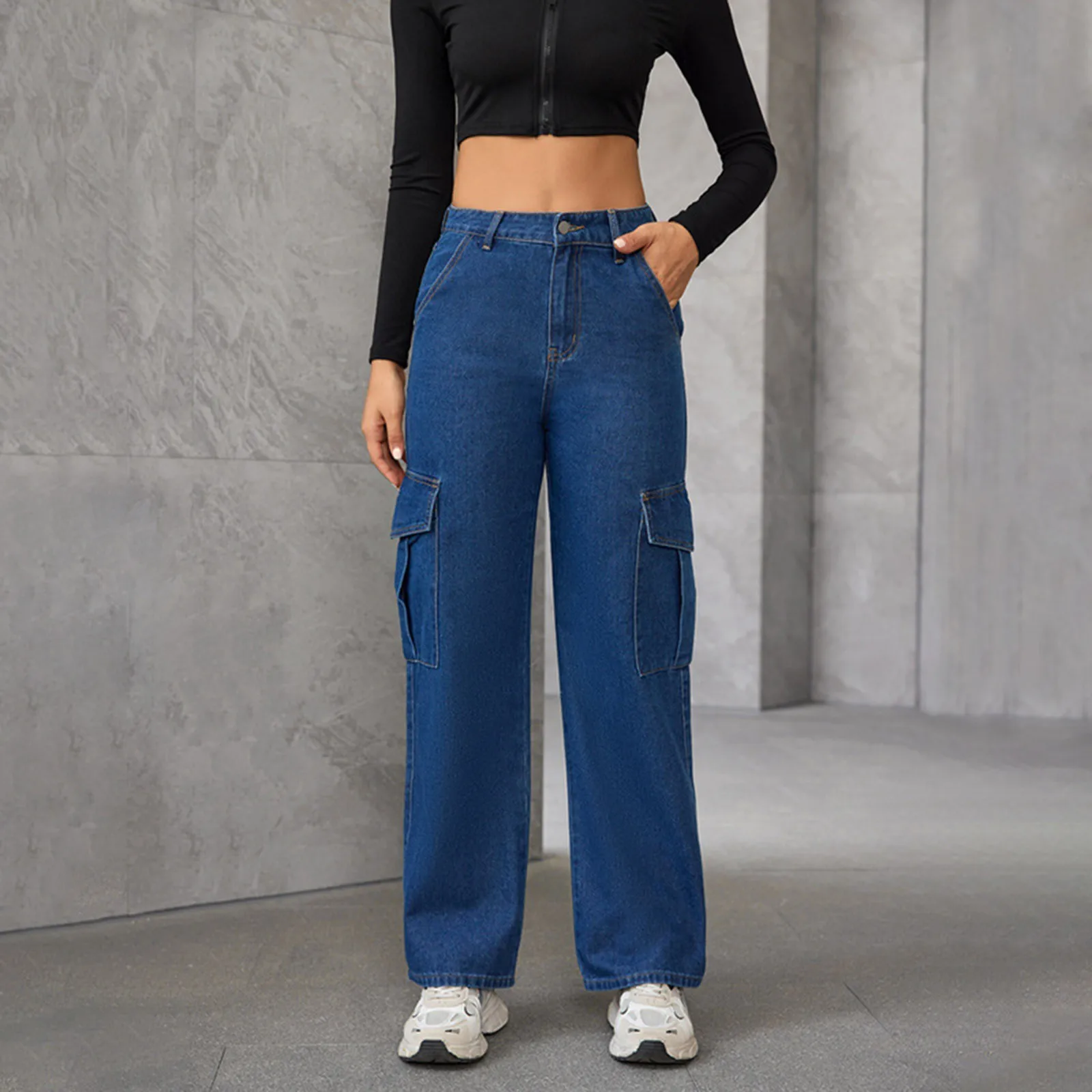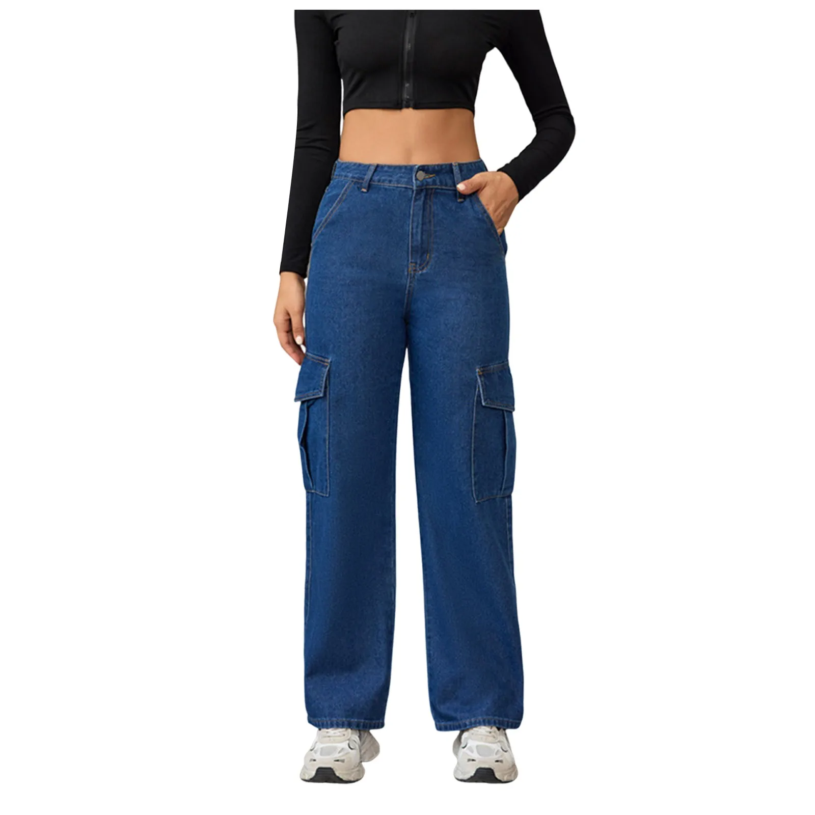 Women'S 2025 New Washed Jeans High Waist Straight Design Overalls Jeans With Practical Pockets Comfortable Formfitting Jeans
