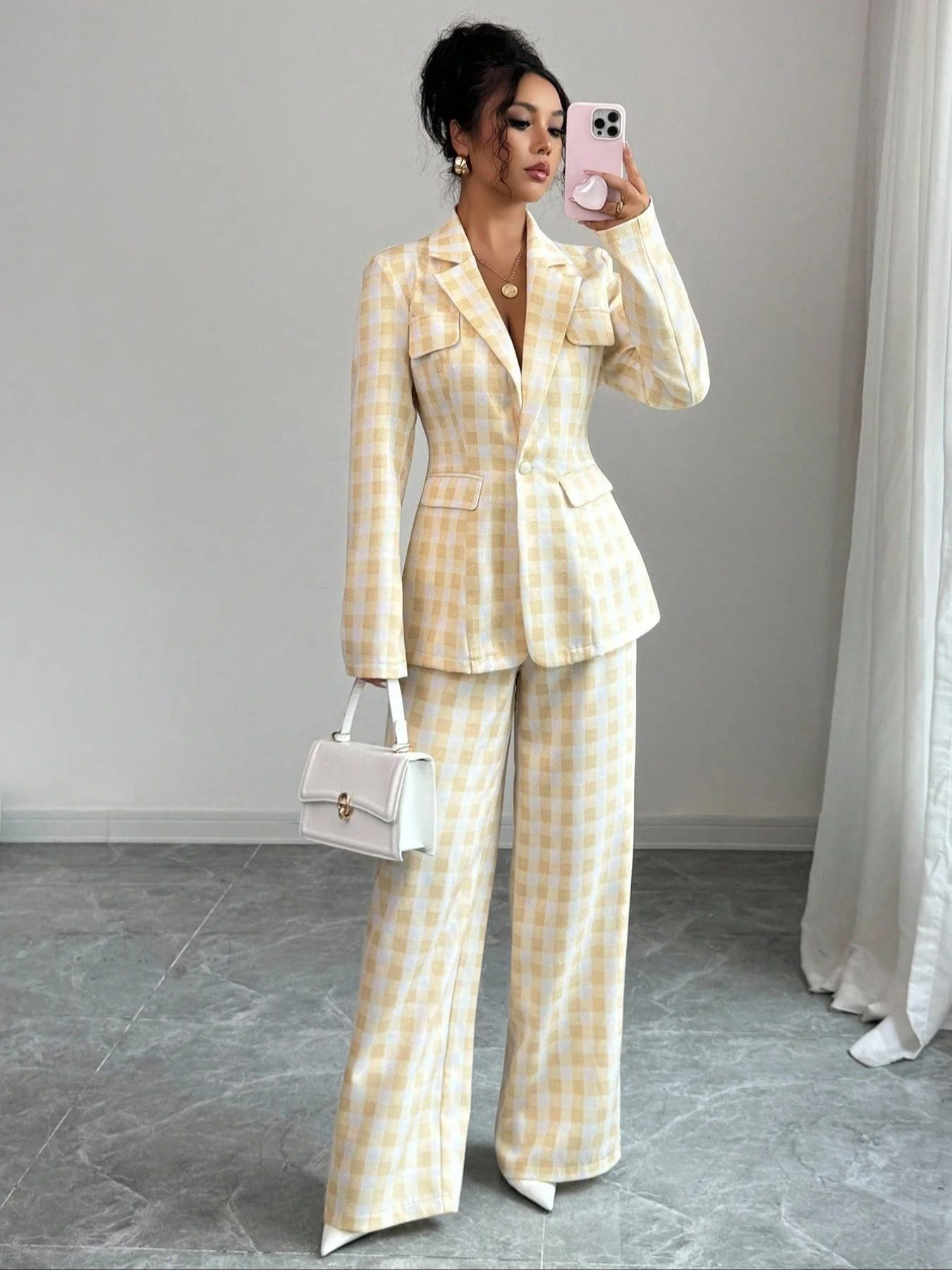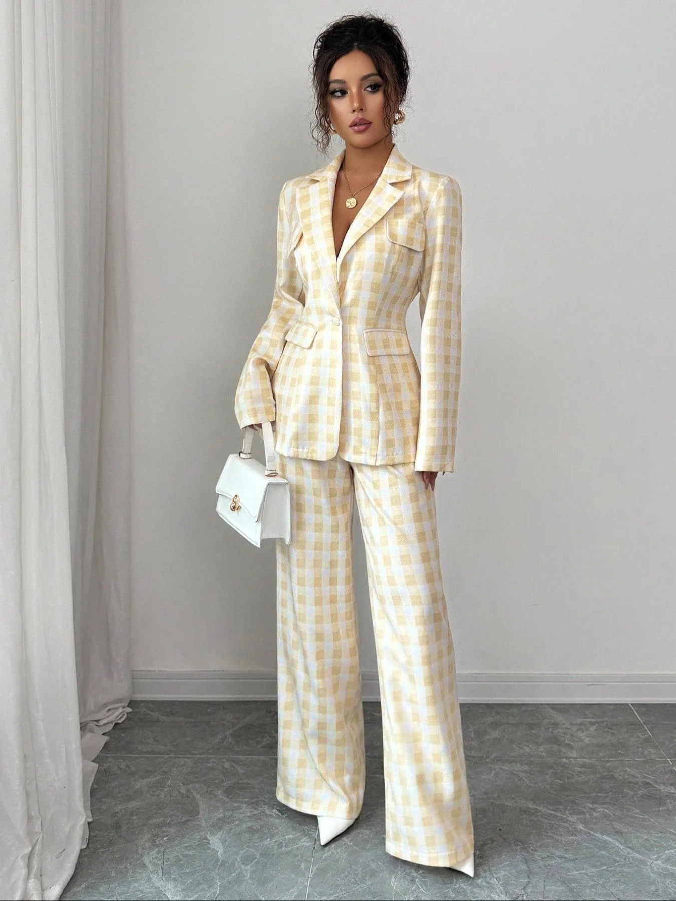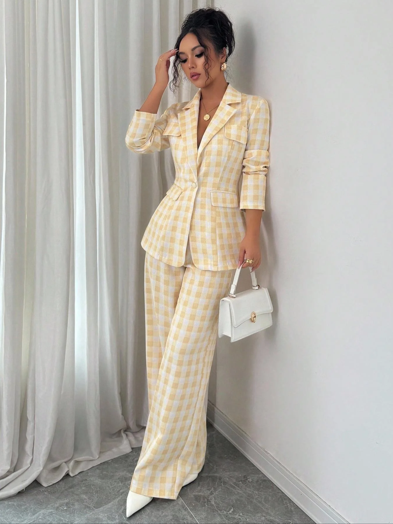 Women's Casual Business Suit Set Two-Piece, Regular Fit Woven Fabric, Plain Design for Fall & Winter Seasons