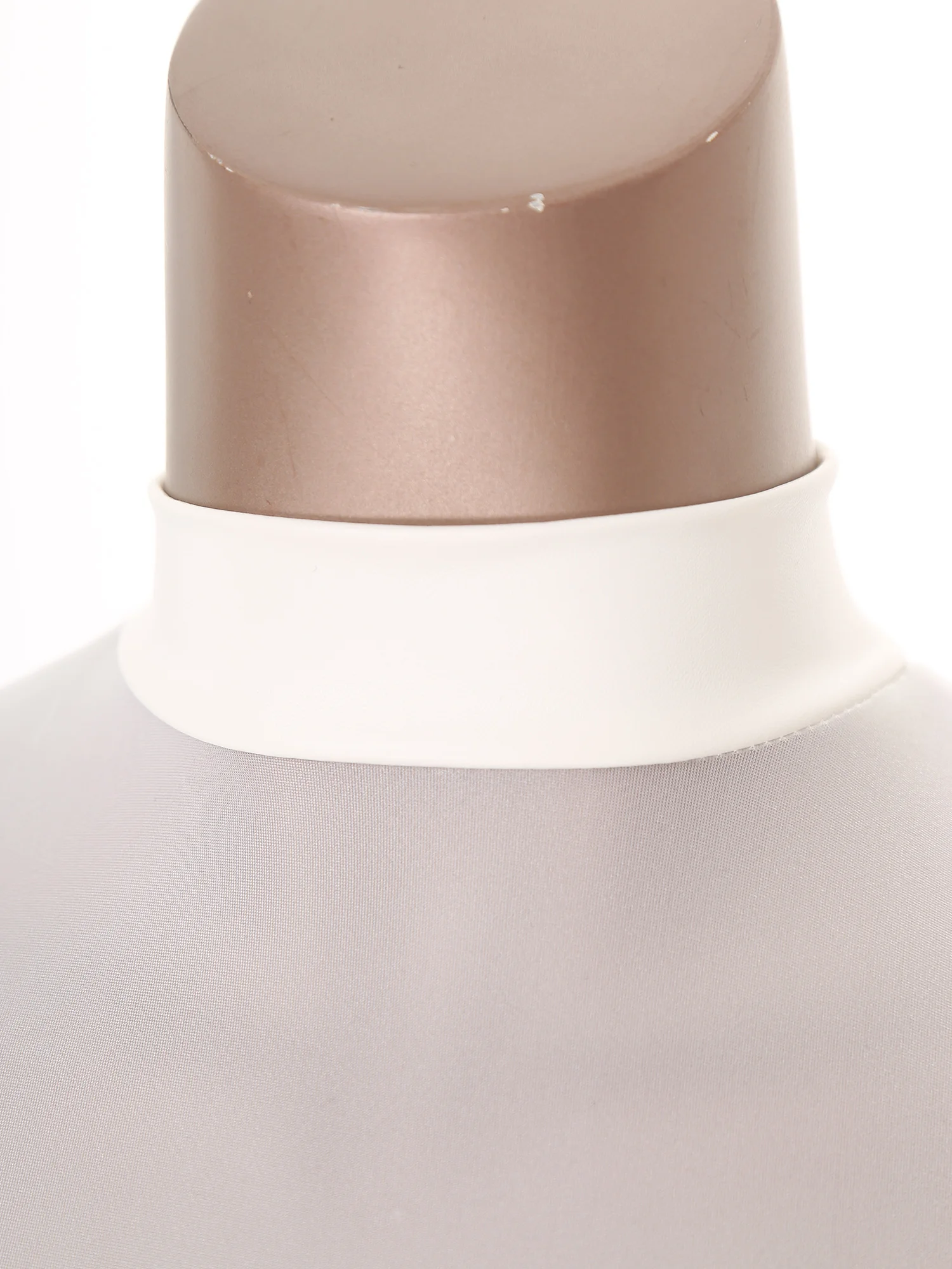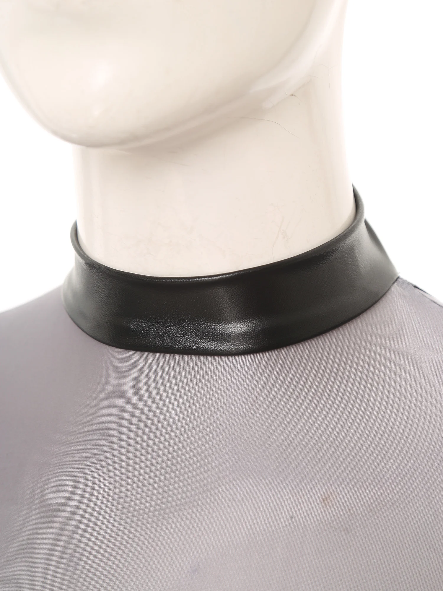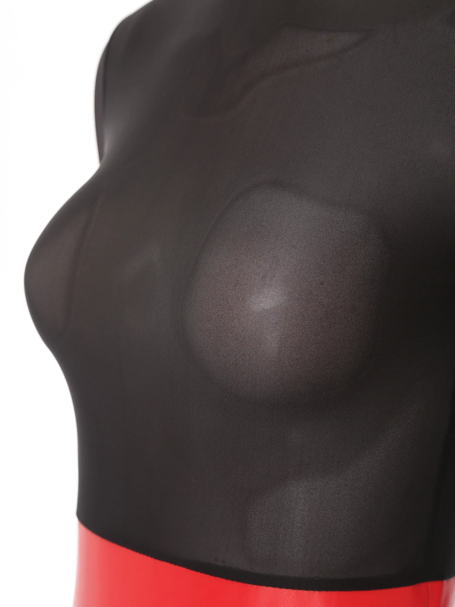 Chic patchwork design, sheer and glossy bodice spliced with PU leather skirt creates an unexpected contrast effect, stunning and cool.