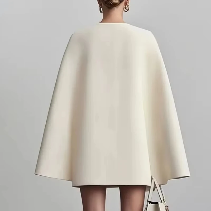 Women's suit dress for autumn office wear, double-breasted cape-like cloak, solid color V-neck suit jacket